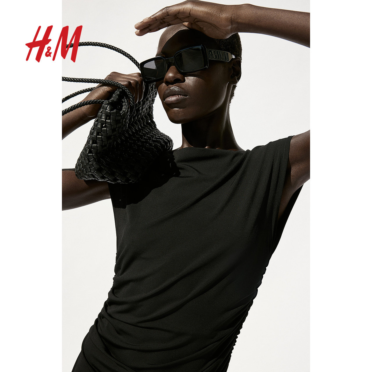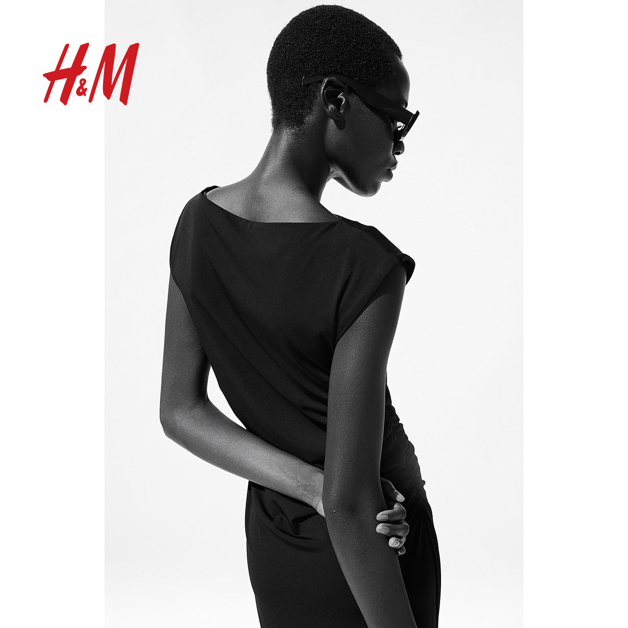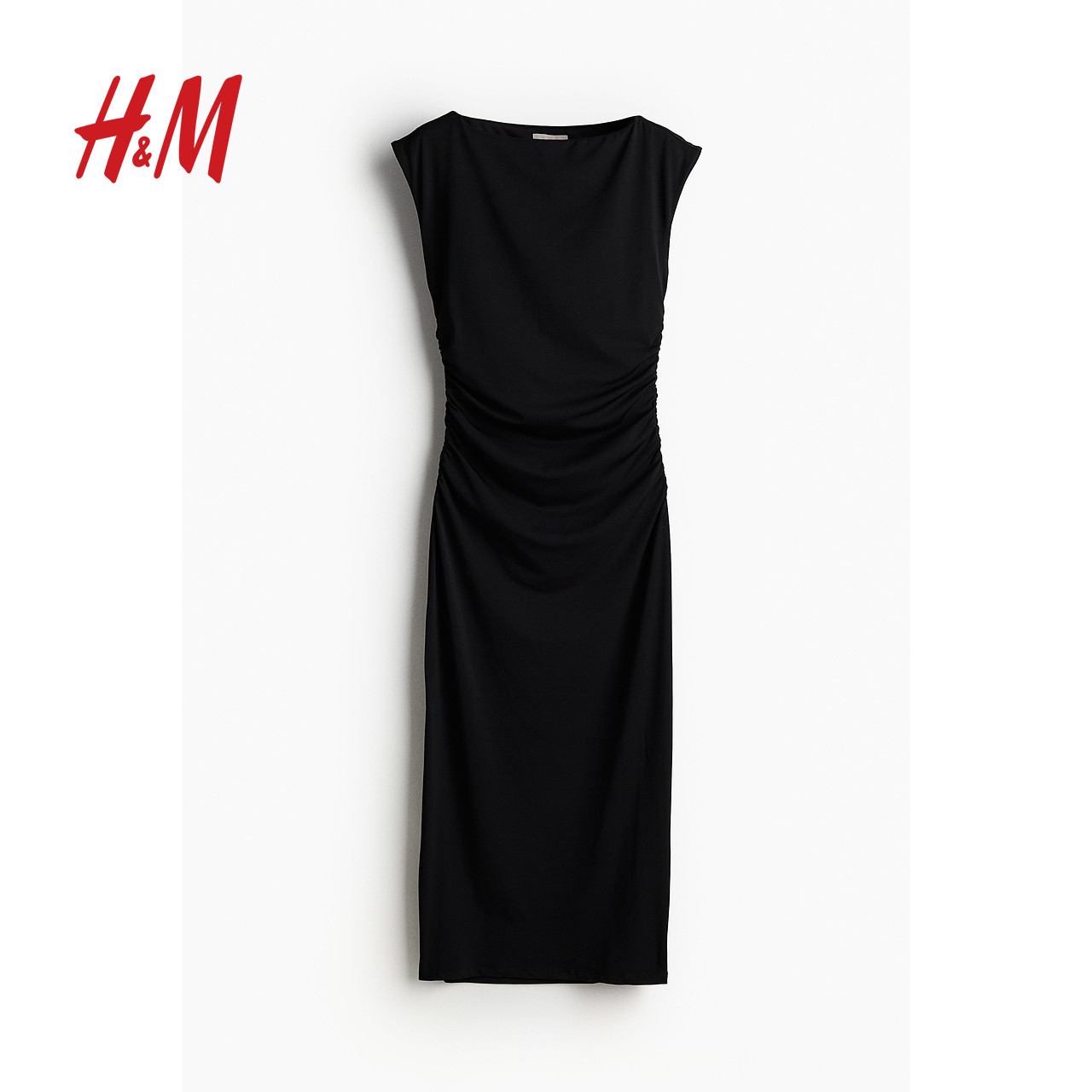 HM女装连衣裙春季时尚一字领修身盖袖中长裙静奢风连衣裙1239334