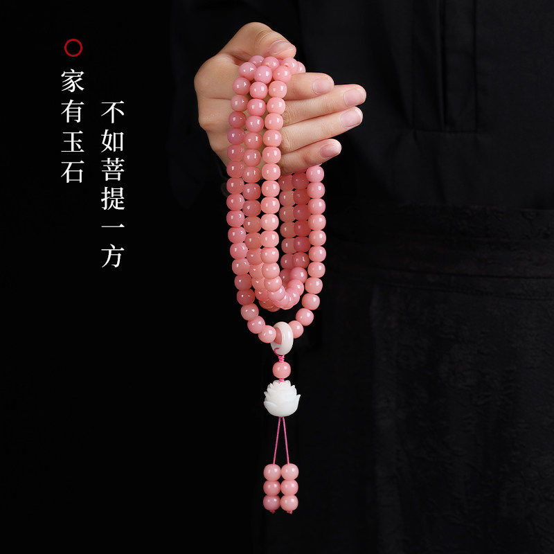 抖音同款霞光粉国风菩提根手持手串男女108颗白玉菩提子佛珠盘玩