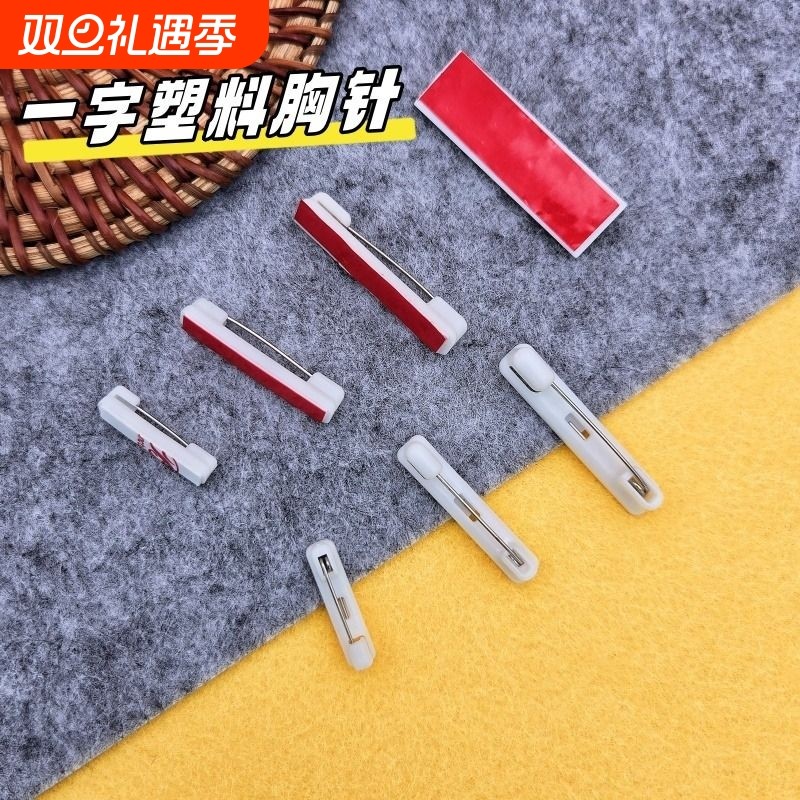 白塑料胸牌别针平底可粘贴带背胶工号牌安全胸针徽章材料配件新年