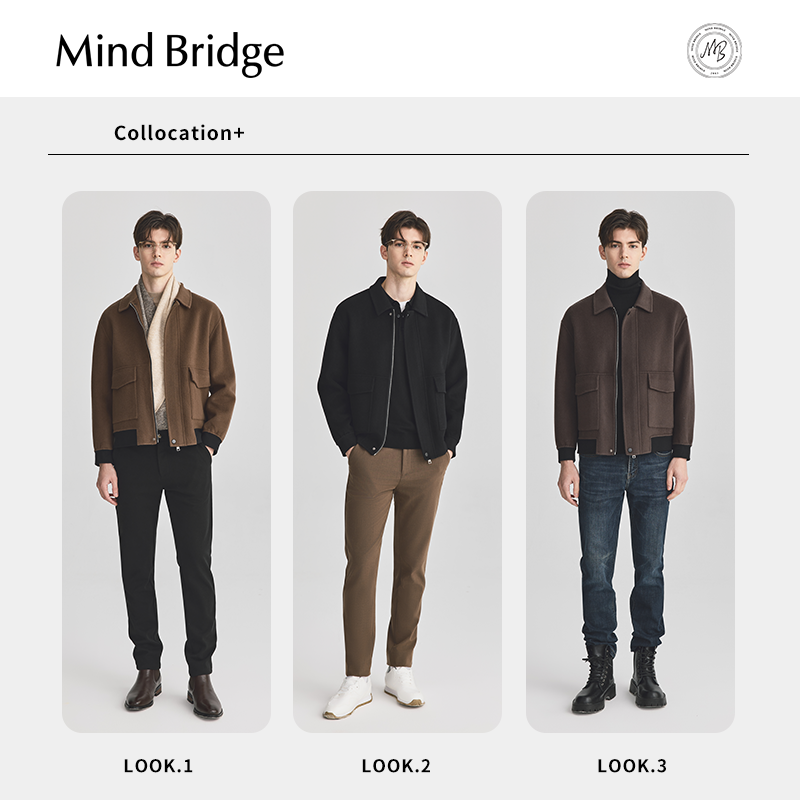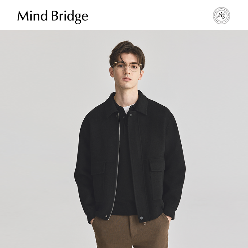 Mind Bridge2025年男士短款休闲翻领毛呢外套冬季羊毛翻领夹克