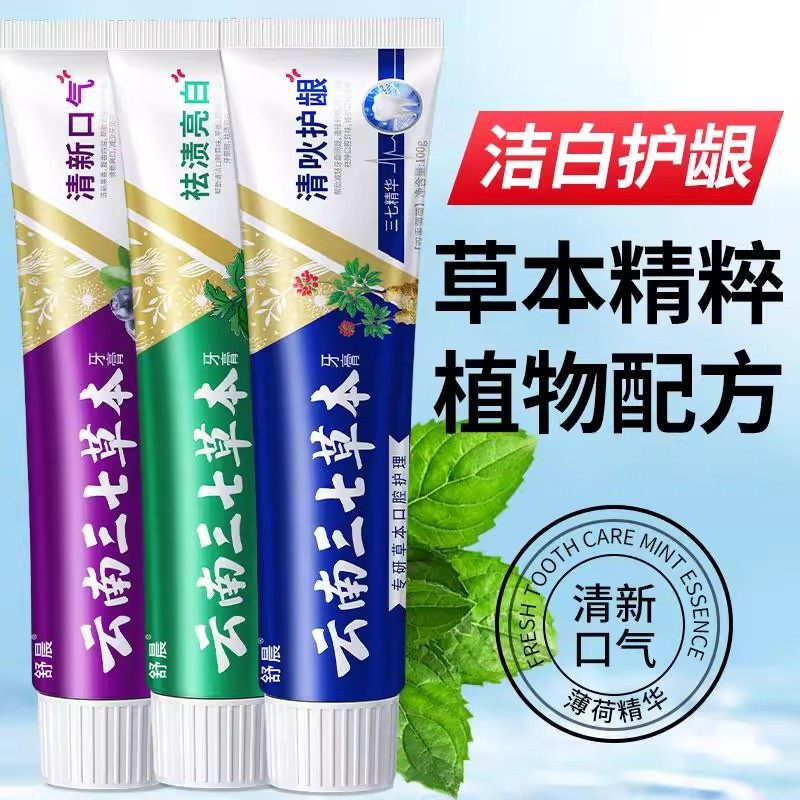云南三七牙膏官方正品草本美白去口臭亮白清新口气牙龈薄荷口腔