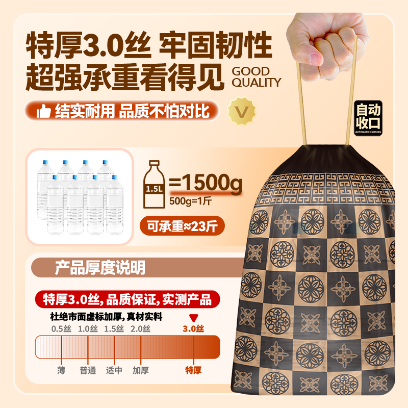 【百亿到手1分钱】印花抽绳垃圾袋家用手提式抽绳垃圾袋厨房加厚