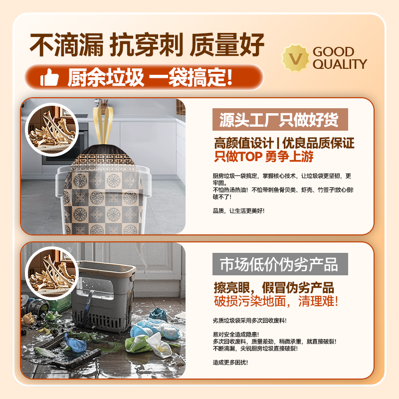 垃圾袋星科美免撕抽绳特厚家用加厚手提式厨房收口塑料袋拉级袋