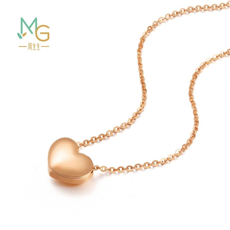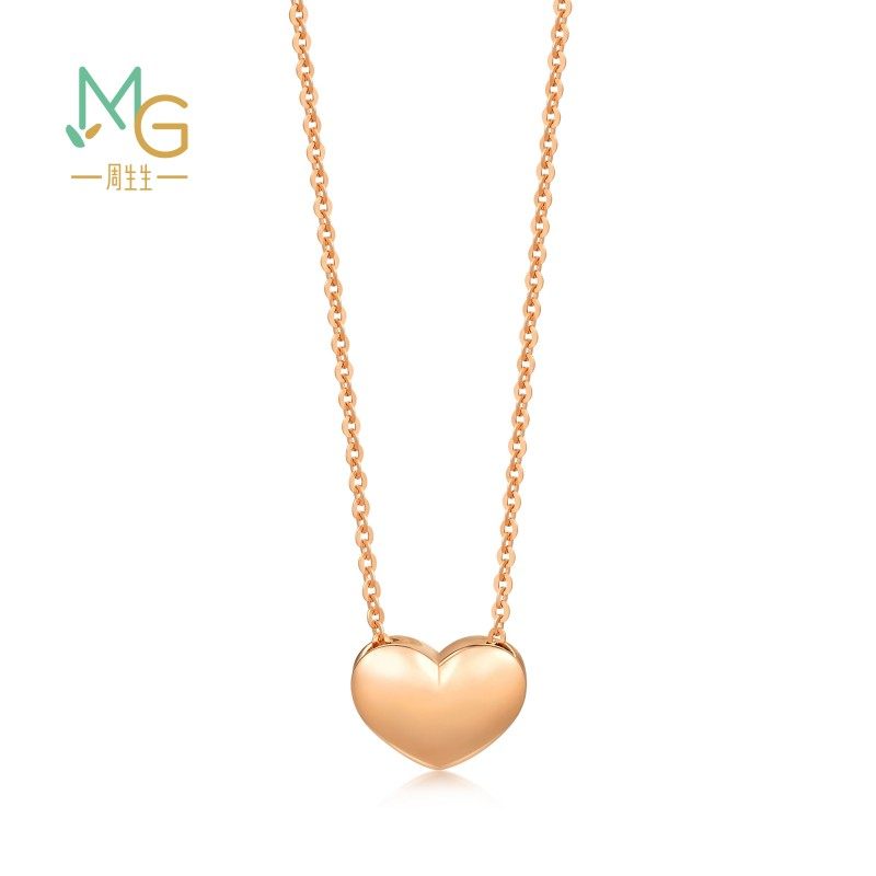 周生生薄荷系列亮面心形项链18K玫瑰金套链92783N