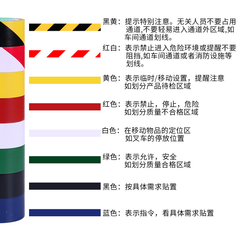 安全警示胶带PVC黑黄斑马线红白警戒地标防水耐磨区域划分贴地板地面胶带5S标识彩色醒目划线加长警告胶带纸