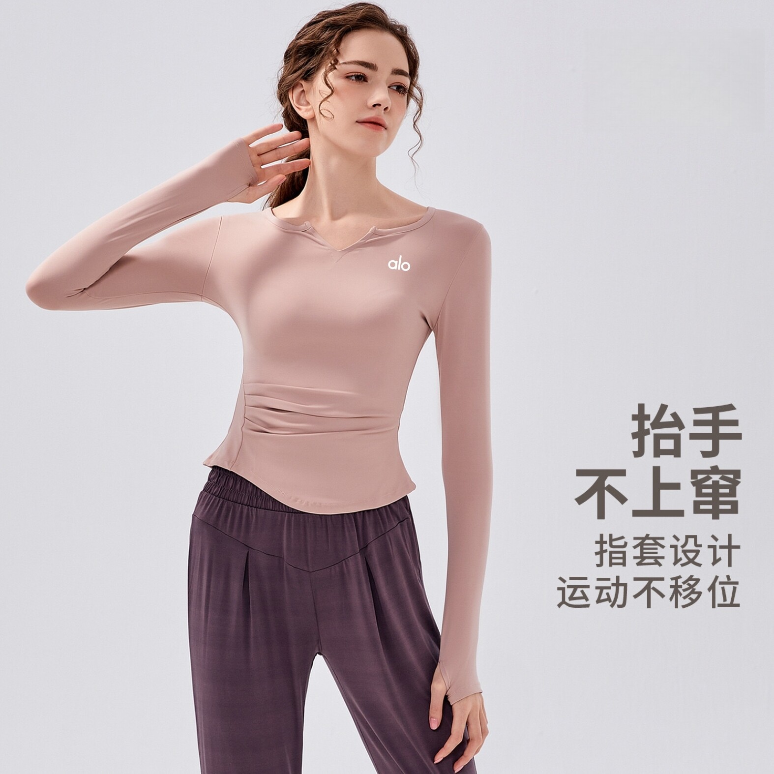 alo yoga瑜伽长袖v领运动女弹力速干跑步健身羽毛球秋打底训练T恤