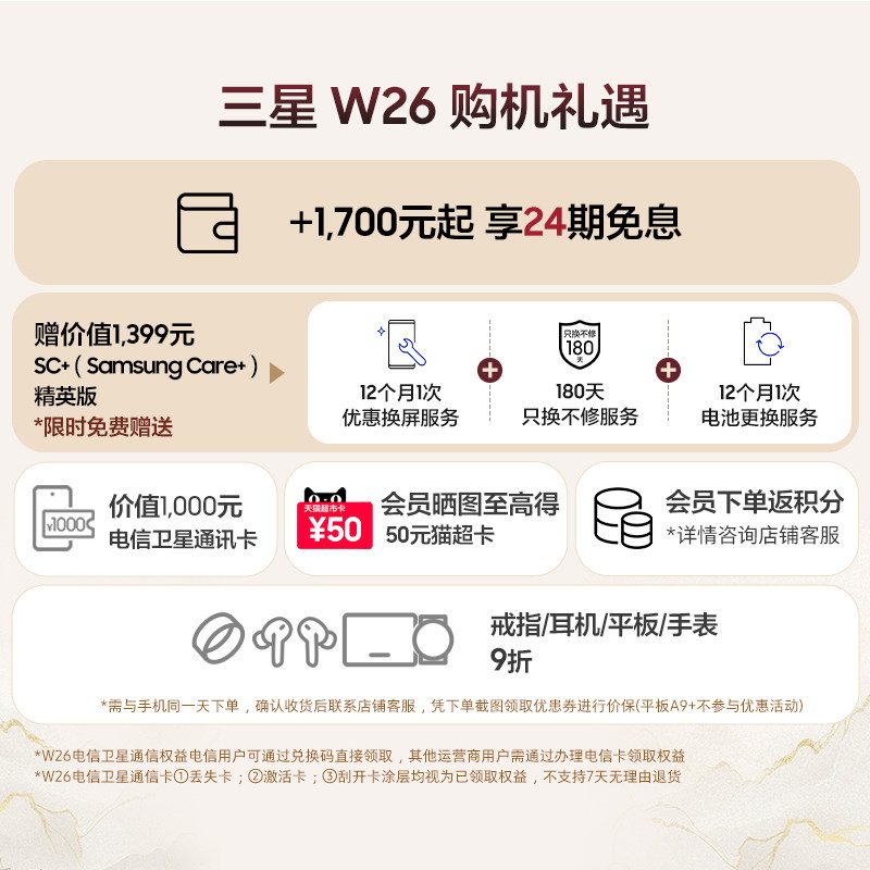 【24期免息】Samsung/三星 W26心系天下高端折叠屏4.2mm超轻超薄大屏商务AI智能手机三星官方旗舰店