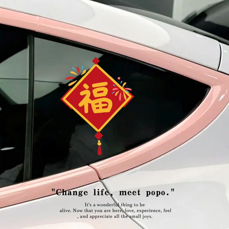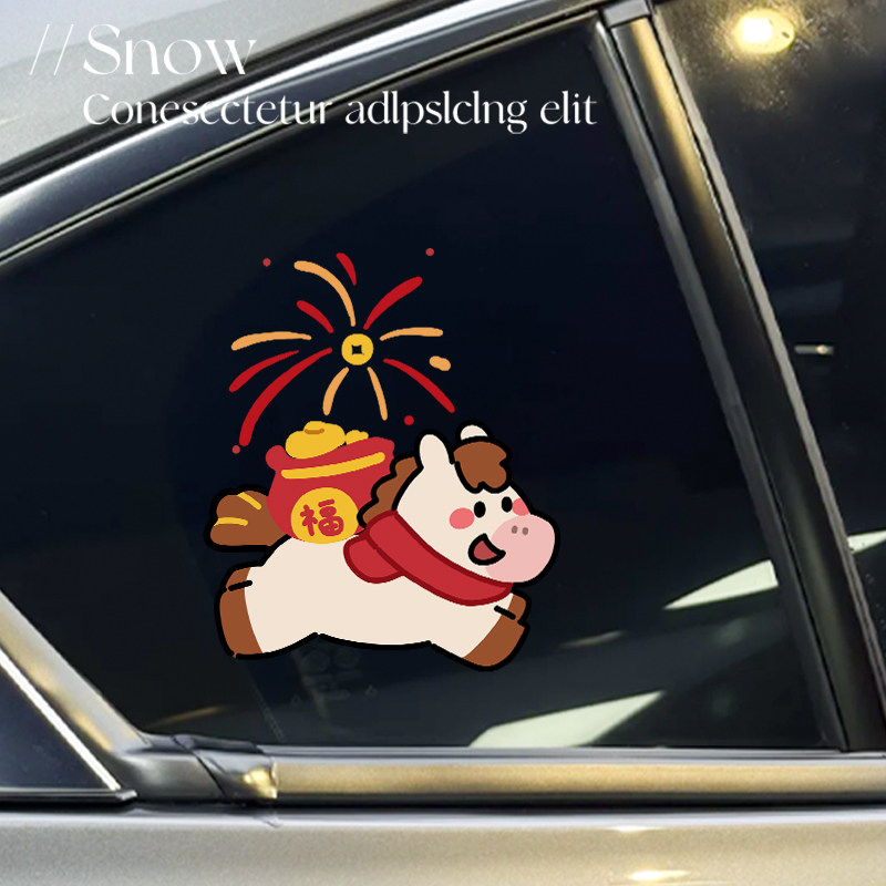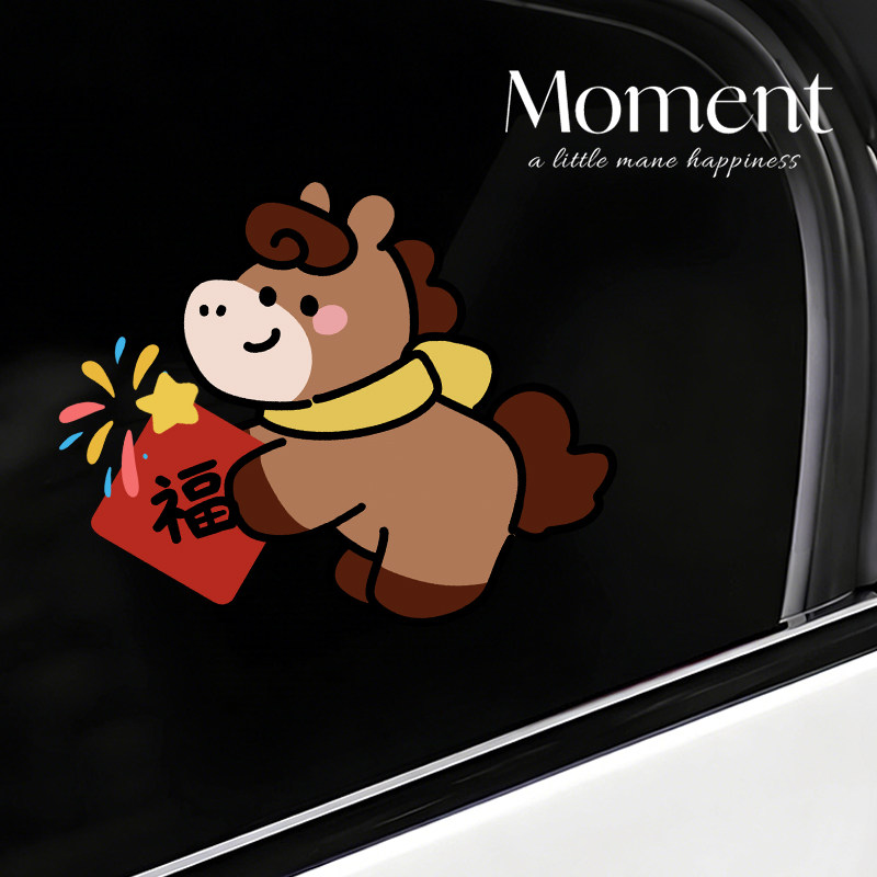 小马来福马年三角窗车贴高级感车身装饰贴新年汽车贴纸创意个性