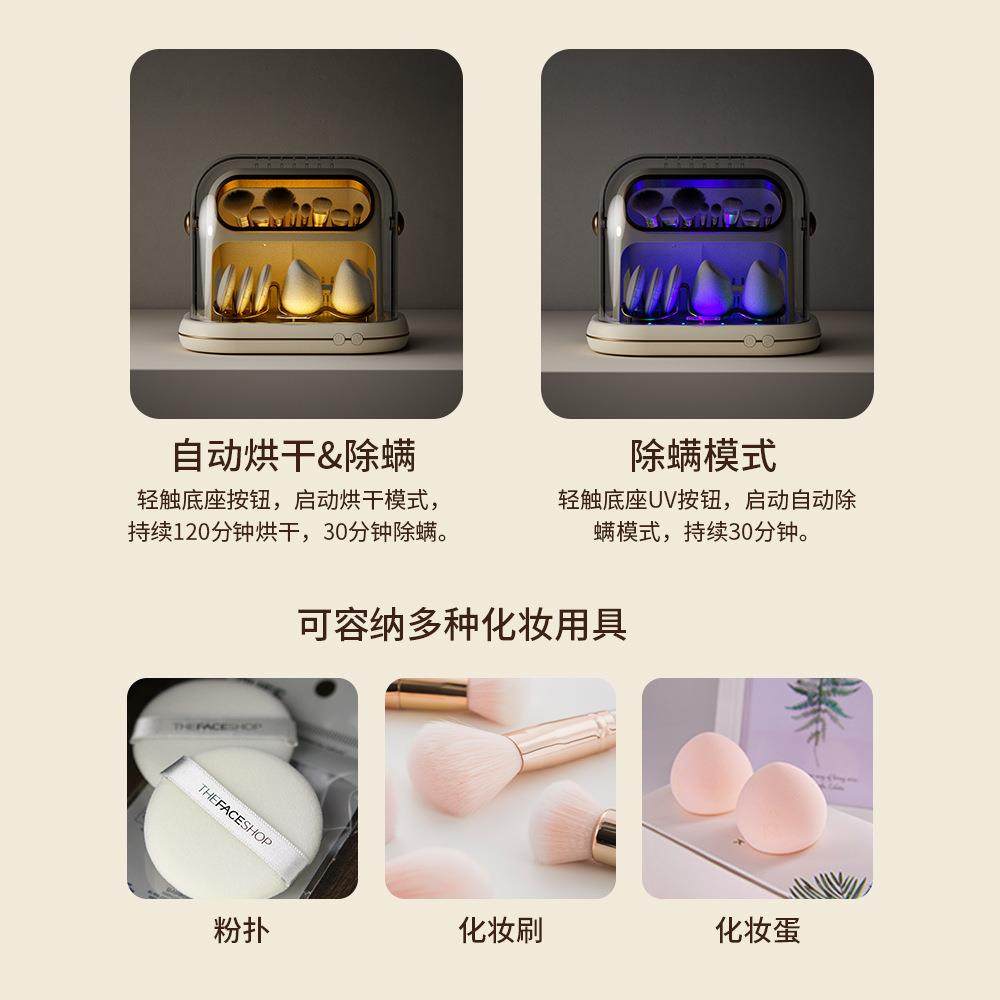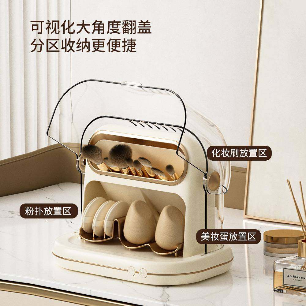 新款化妆刷彩妆蛋粉扑烘干除螨机多功能美妆工具防尘桌面收纳盒