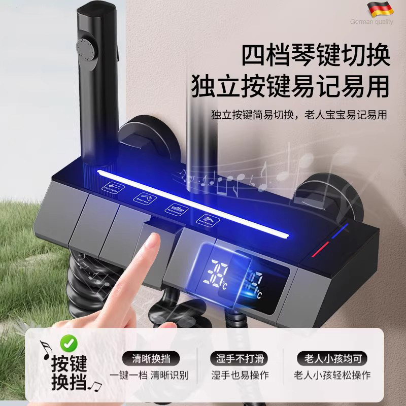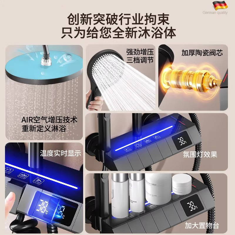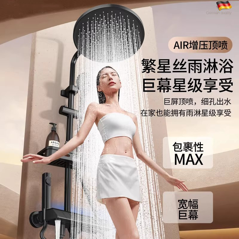 【轻奢】精铜淋浴花洒套装枪灰家用恒温沐卫浴室增压洗澡喷头花晒