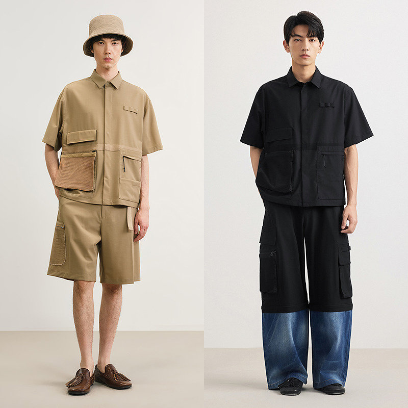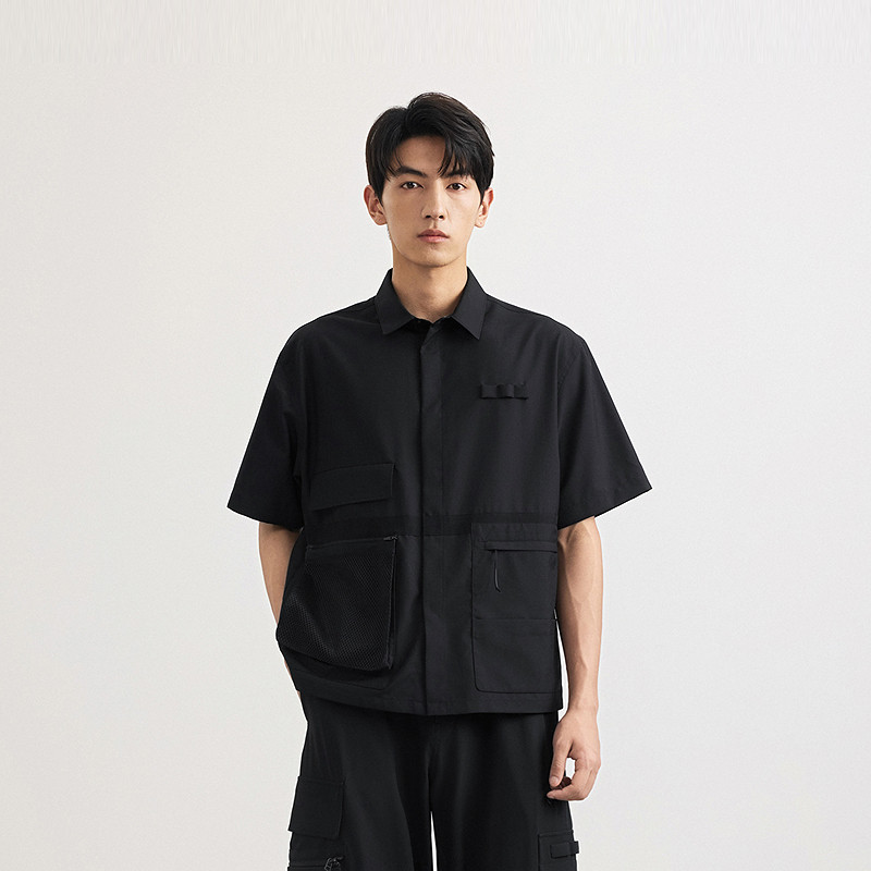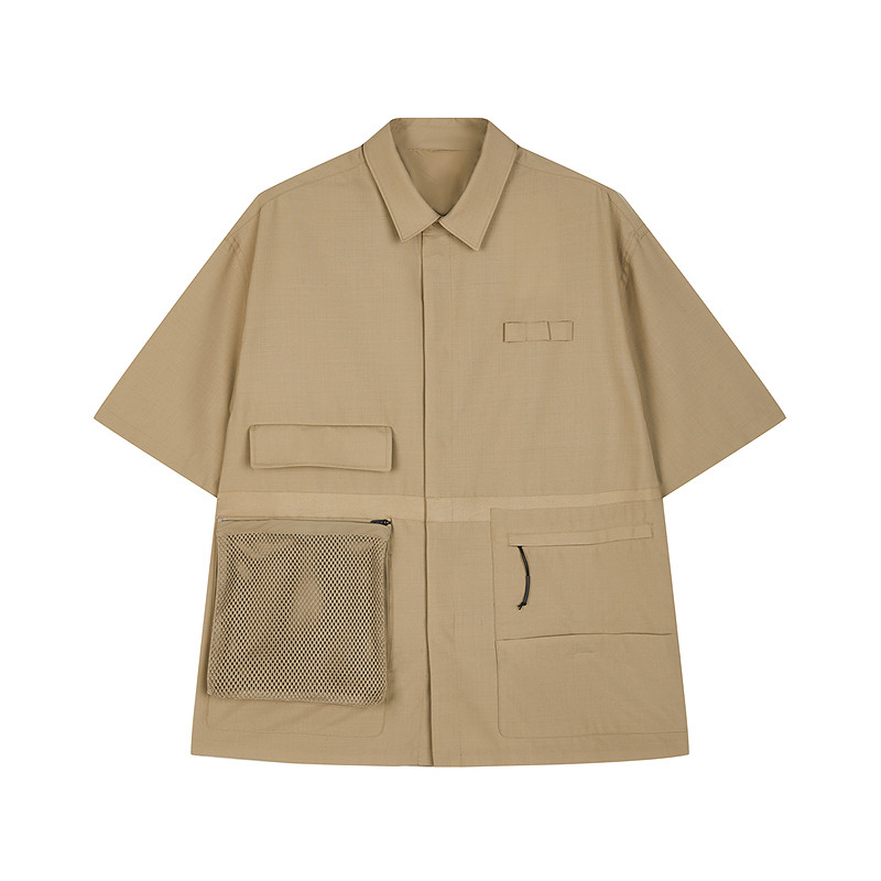 速写男装春夏新款男士衬衫多口袋短袖衬衣轻户外男士上衣休闲简约