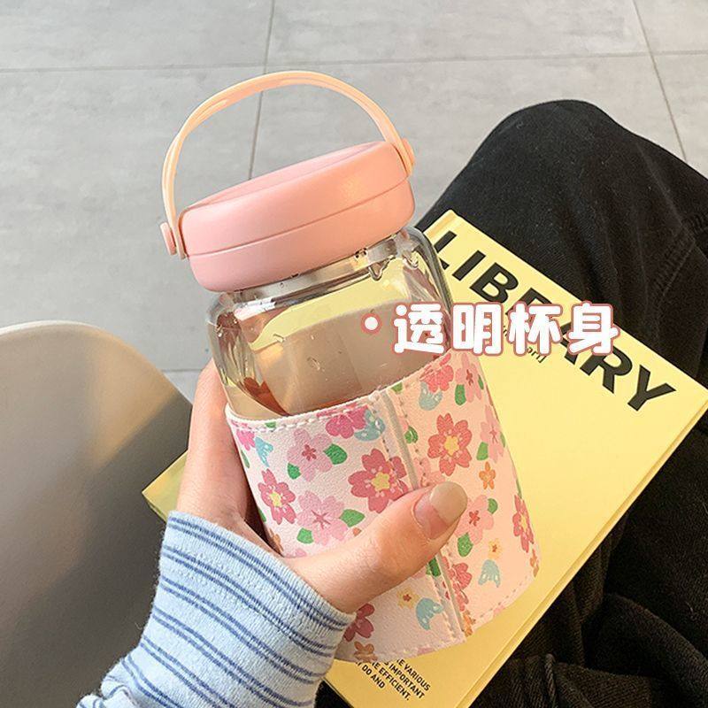 可爱卡通玻璃杯大容量水杯2024新款女杯子办公室家用牛奶杯奶茶杯