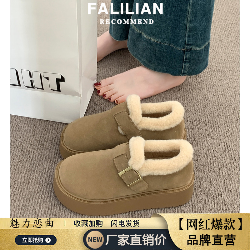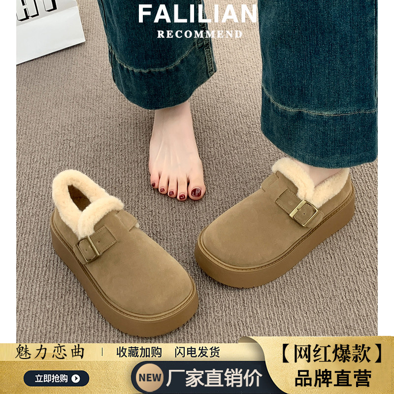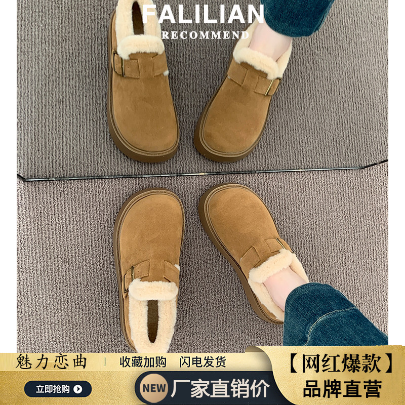 厚底加绒勃肯鞋女2025新款秋冬季外穿毛毛鞋子保暖棉鞋雪地靴毛绒