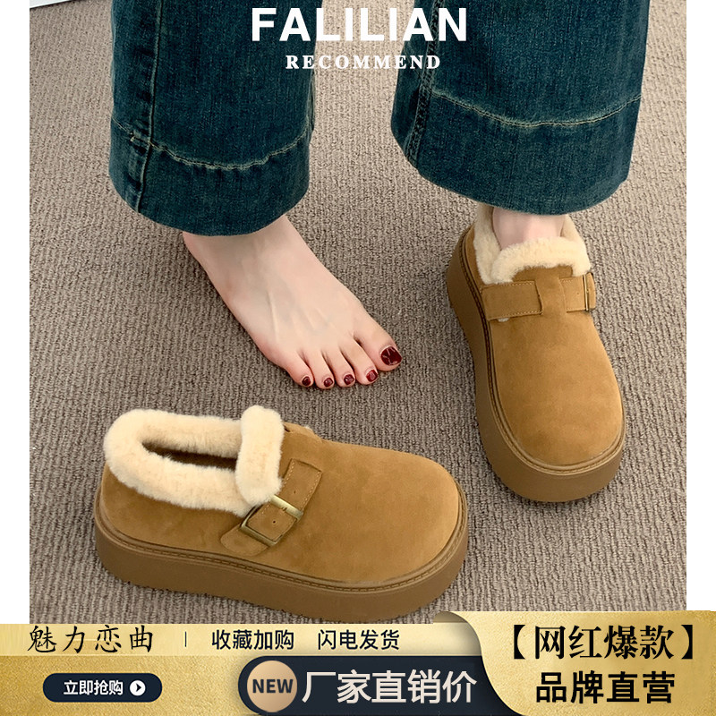 低帮厚底雪地靴女2025新款冬季懒人一脚蹬毛毛棉鞋加绒加厚女鞋子