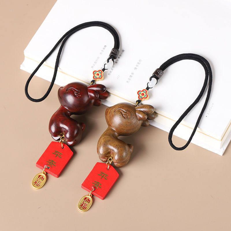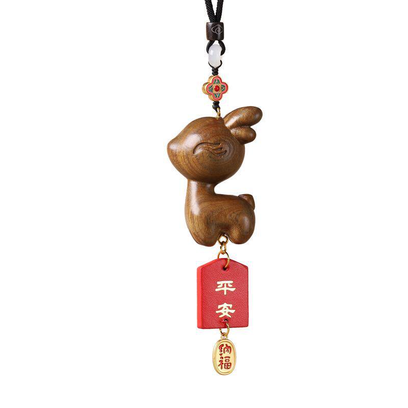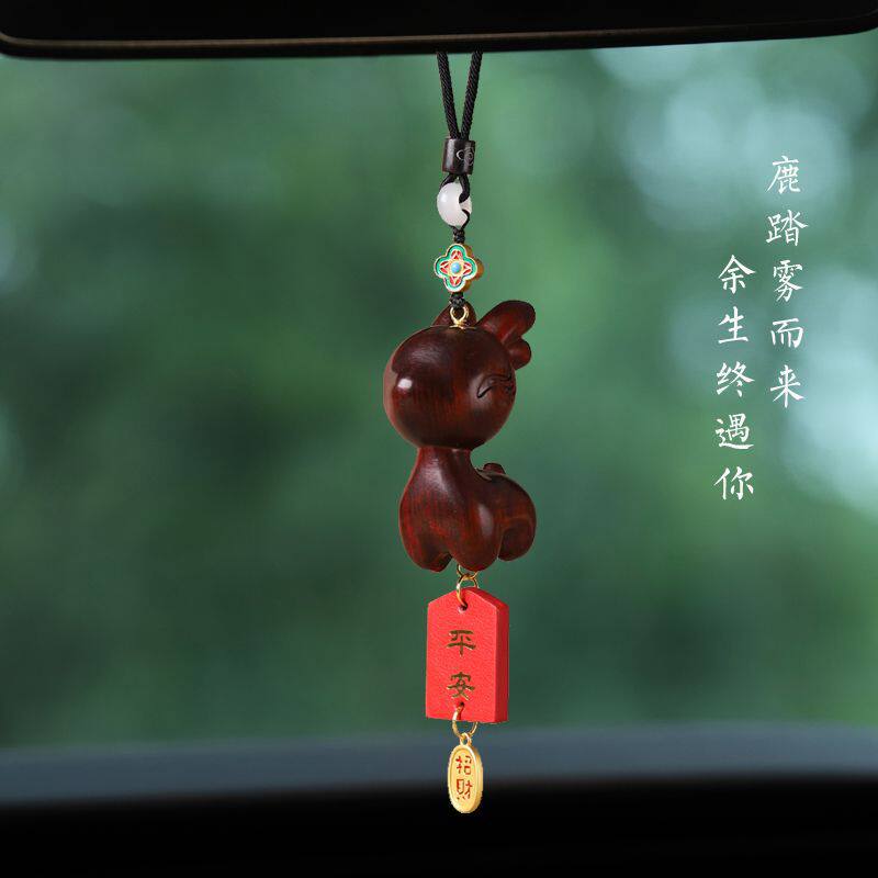 一路檀木小鹿汽车后视镜挂件可爱车载车内吊坠创意摆件手把件