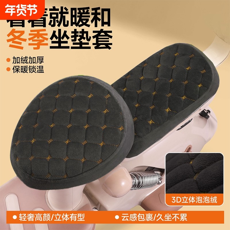 电动车座套冬季加绒加厚通用电瓶车自行车坐垫套久坐神器防寒保暖