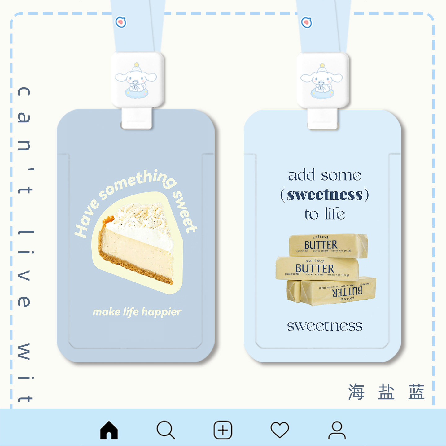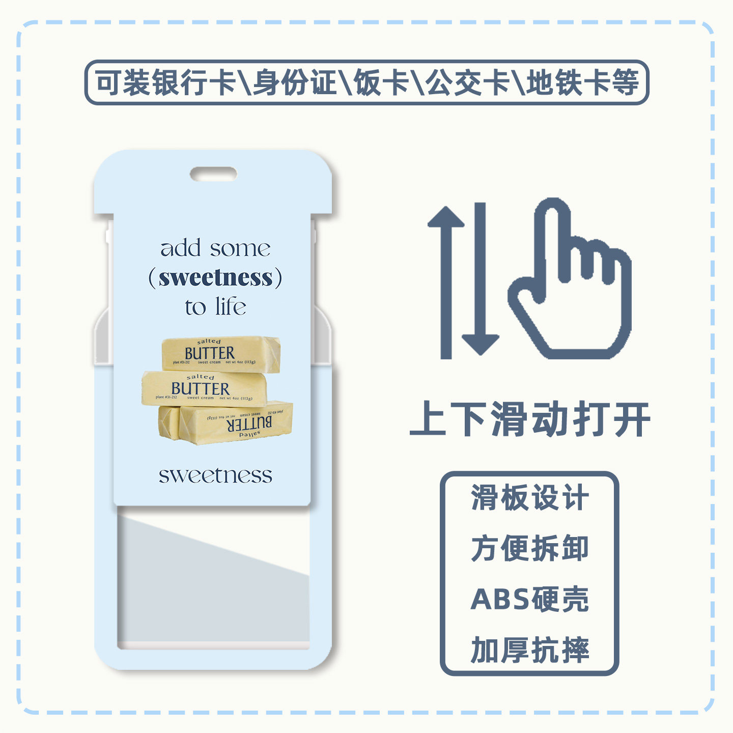 海盐蓝INS风高颜值简约硬壳 市民卡学生校园饭卡地铁公交卡包门禁伸缩挂脖饰工作证件套 可爱风羊城通身份证
