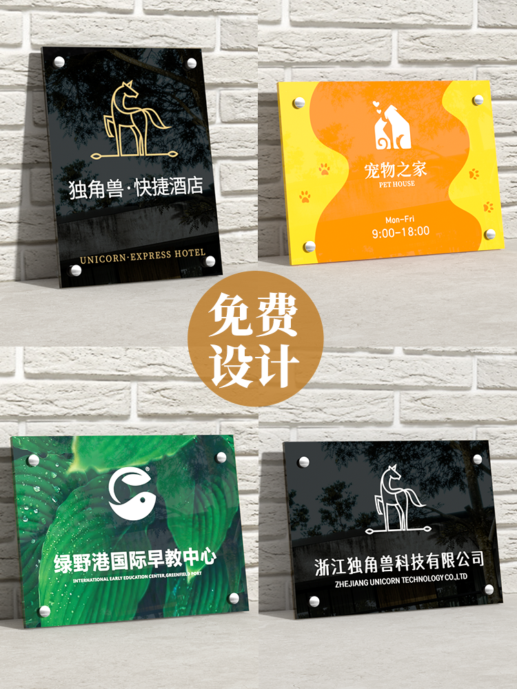 亚克力广告展示牌公司门牌定制门头招牌制作咖啡馆美容院形象定做写字楼工作室标志标牌铭牌高档告示户外牌匾