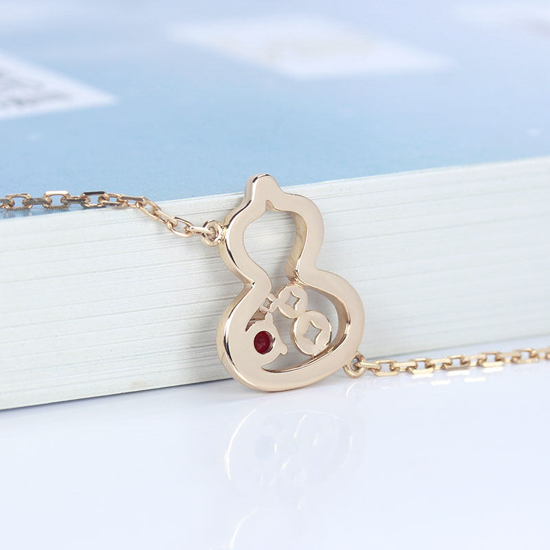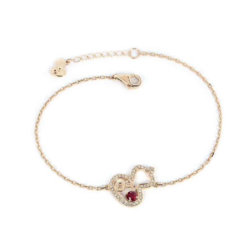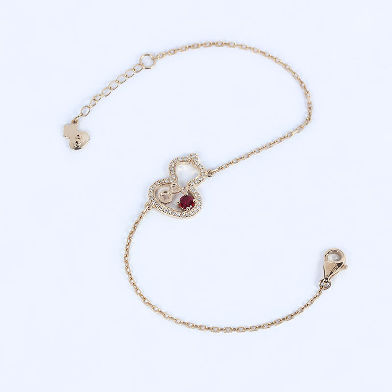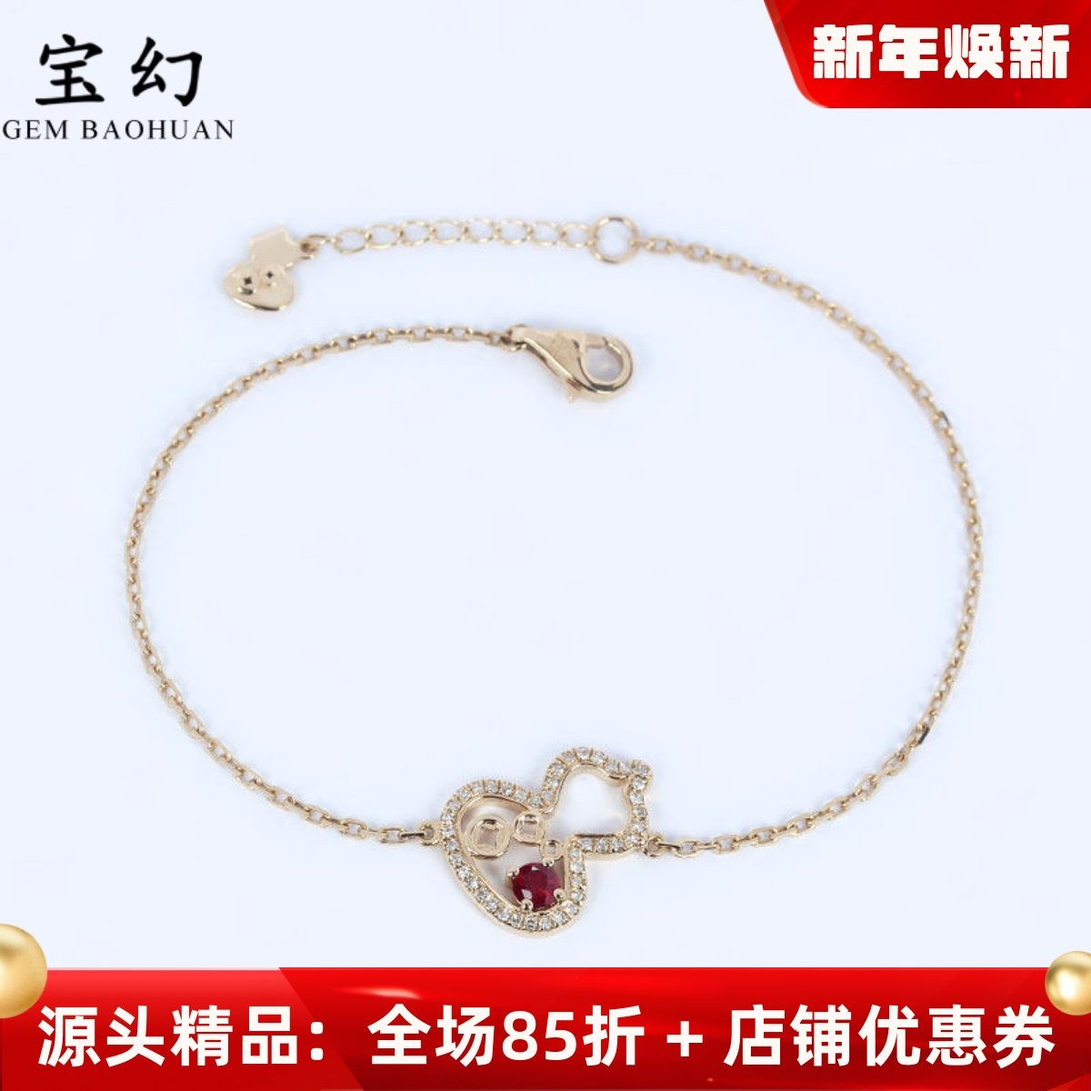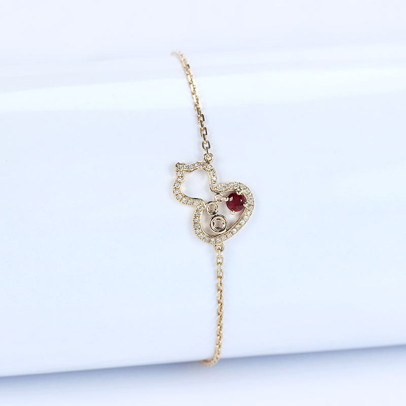 国风葫芦钱币18K玫瑰金天然鸽血红宝石钻石手链 复古手饰正品女款