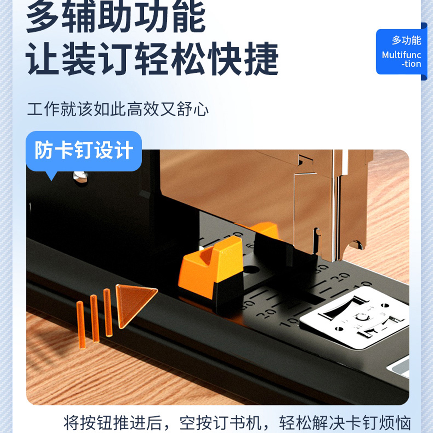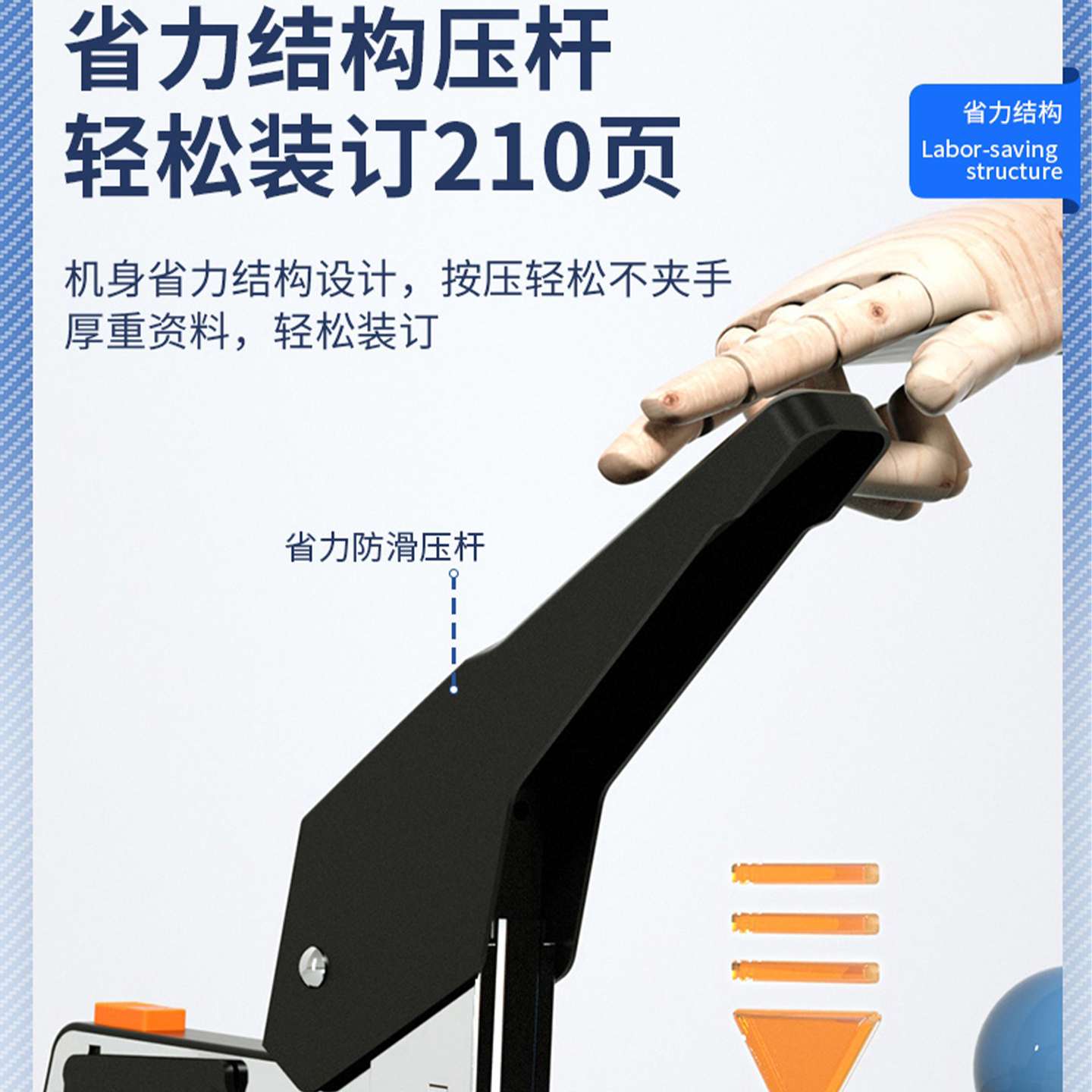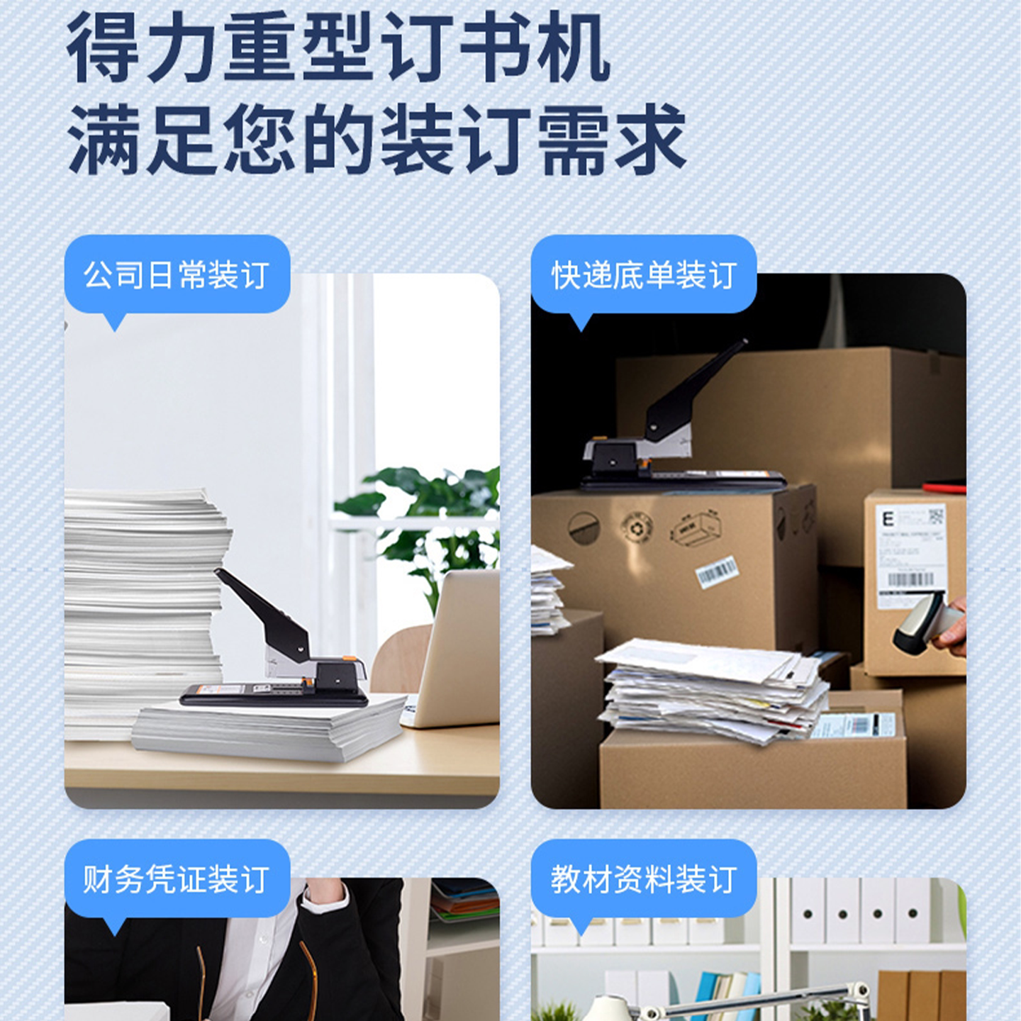 得力0299省力订书机加厚长臂100页学生订书器办公210张重型装订器