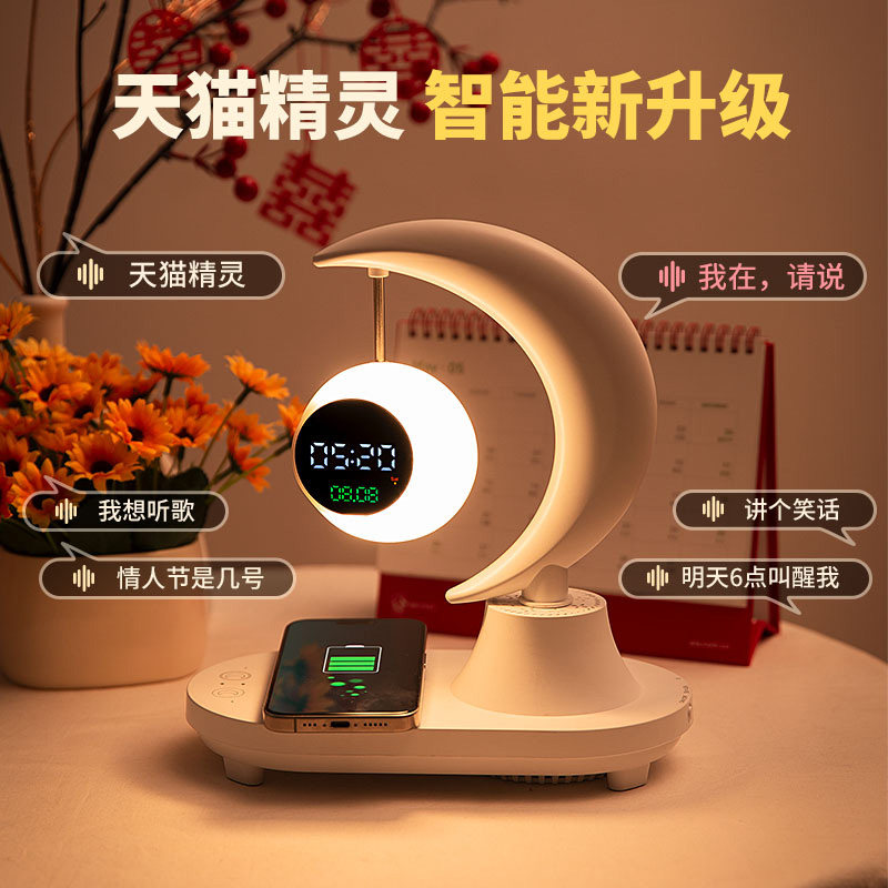 天猫精灵床头小夜灯台灯卧室结婚生日礼物礼品语音控制闹钟情人节