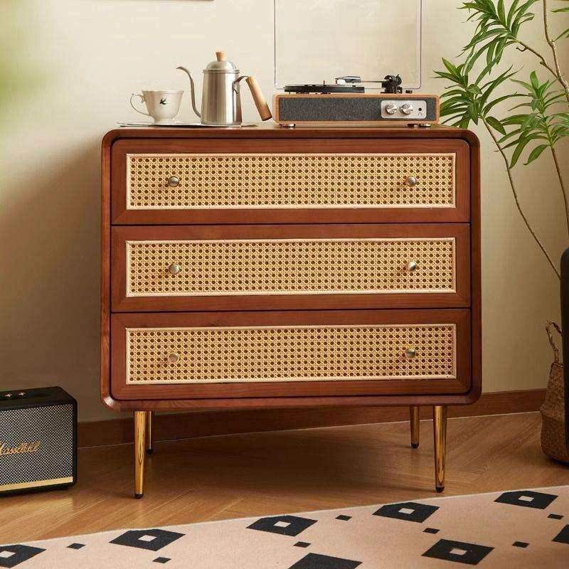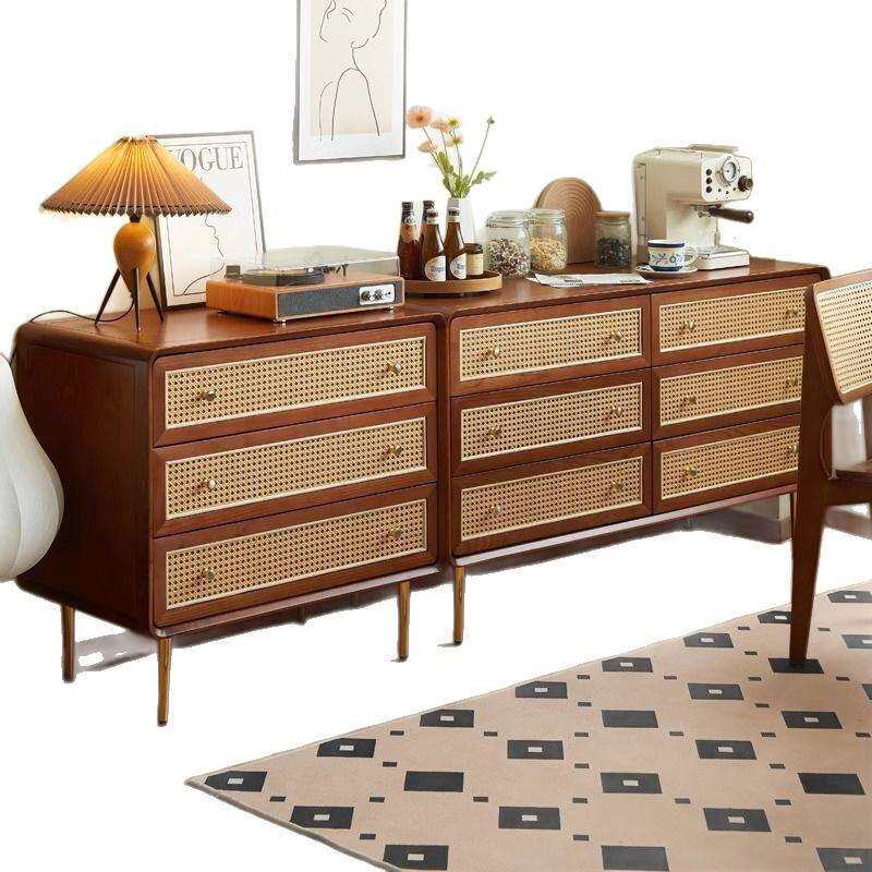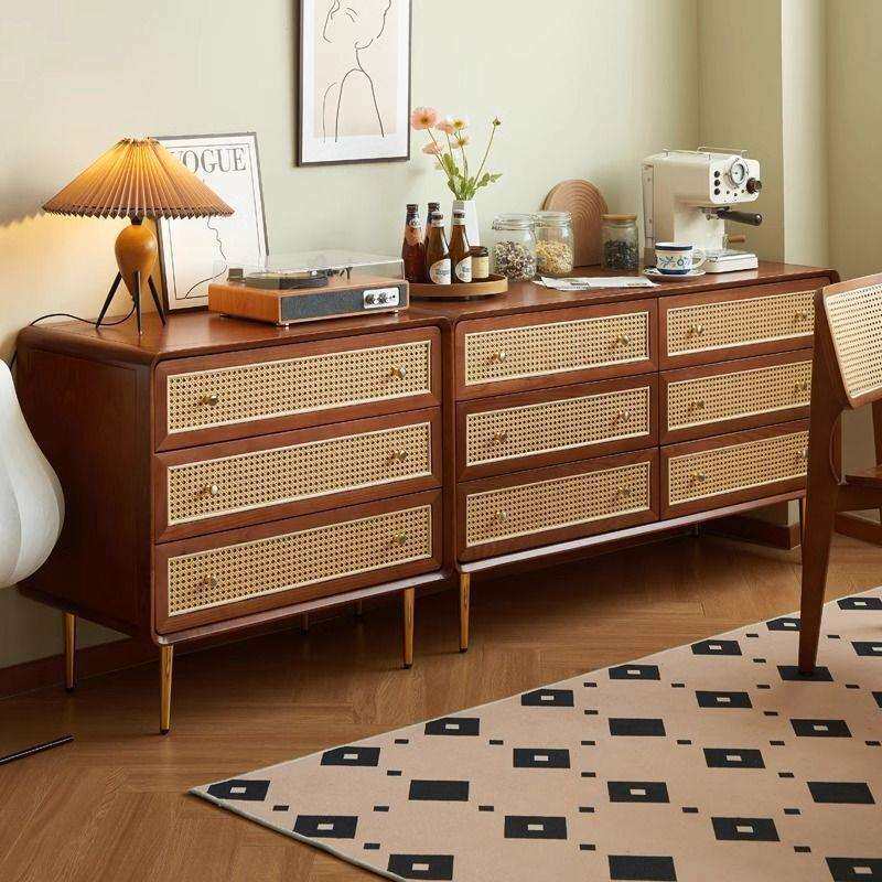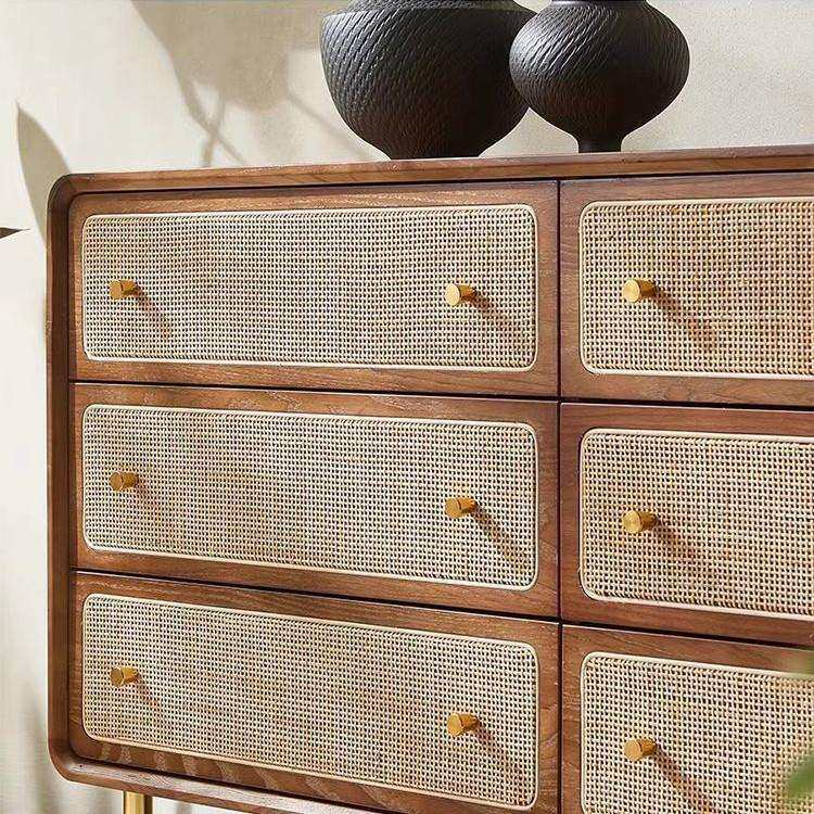 藤编收纳柜子简约现代储物柜卧室多功能床头柜北欧实木三四六斗柜