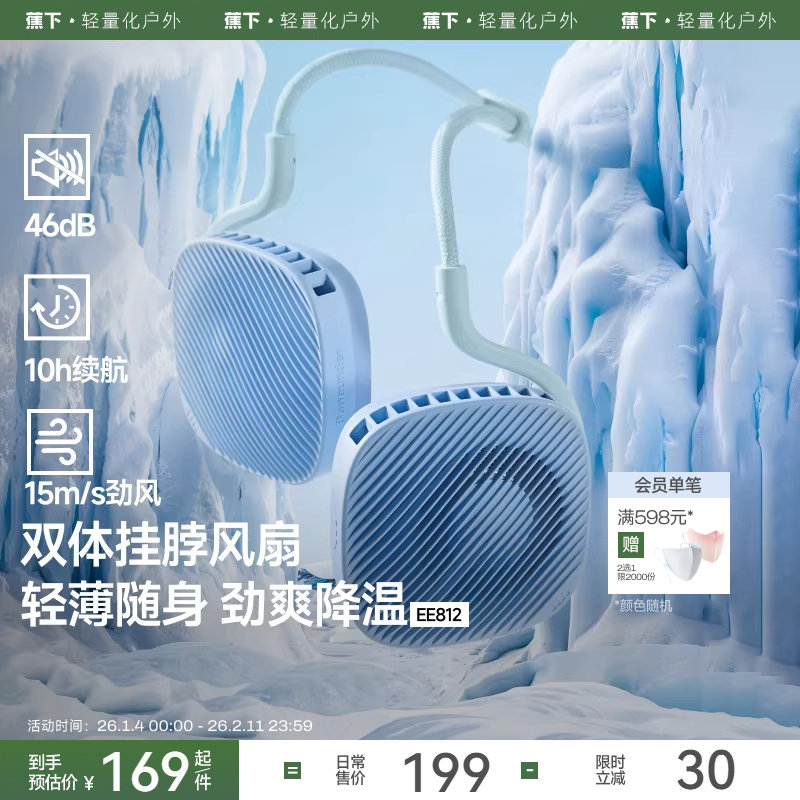 蕉下挂脖电风扇卡片风扇便携充电超长续航静音迷你空调usb小风扇