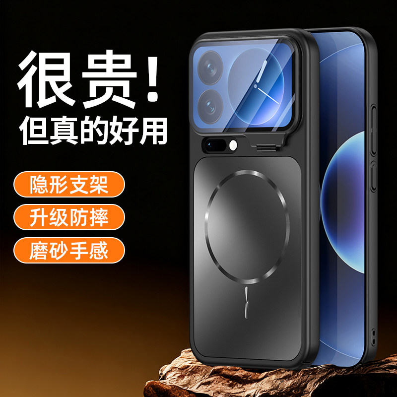 适用小米17promax手机壳高端肤感磨砂全包防摔新款17pro创意磁吸镜头隐形支架por男女士超火爆款简约保护套
