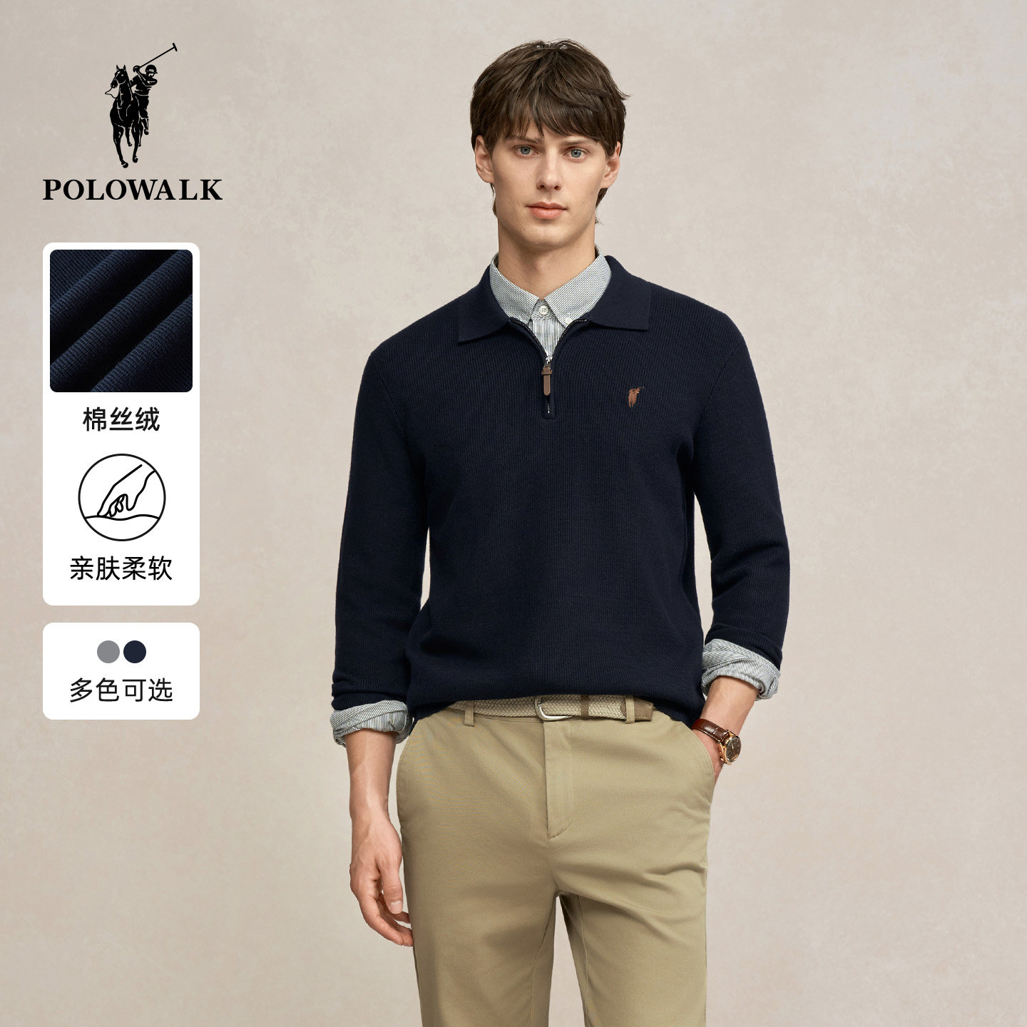 POLOWALK男装针织衫2025秋季新品百搭半拉链翻领套头上衣