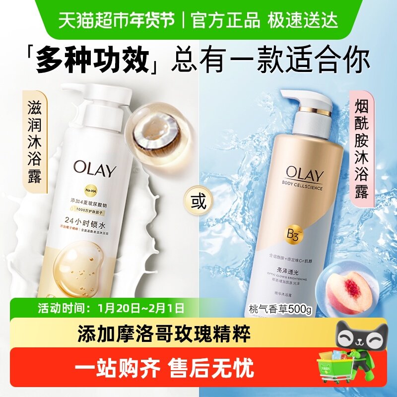 OLAY玉兰油椰子玫瑰檀木精华沐浴露玻尿酸滋润保湿烟酰胺沐浴乳液
