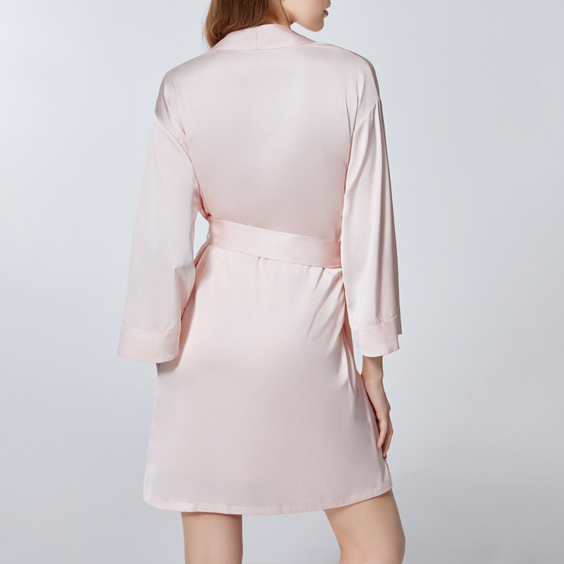 安莉芳长袖v领甜美冰丝睡袍女秋季薄款中长款休闲家居服EL00589