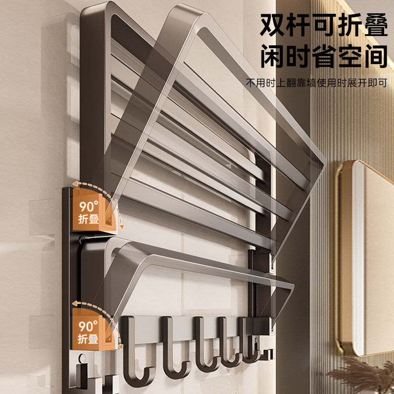 【谢霆锋推荐】佳帮手毛巾架免打孔浴室卫生间置物架一体折叠套装