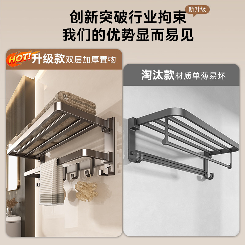 奶油风太空铝毛巾架免打孔高端卫生间浴巾架浴室置物架套装厕所