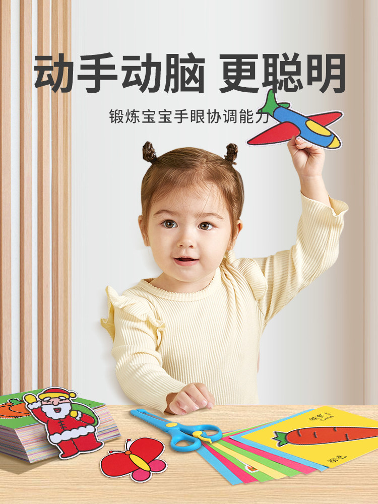 剪纸儿童手工幼儿园3岁2宝宝入门趣味玩具diy制作材料包折纸套装男孩女孩亲子互动剪纸学习动手能力