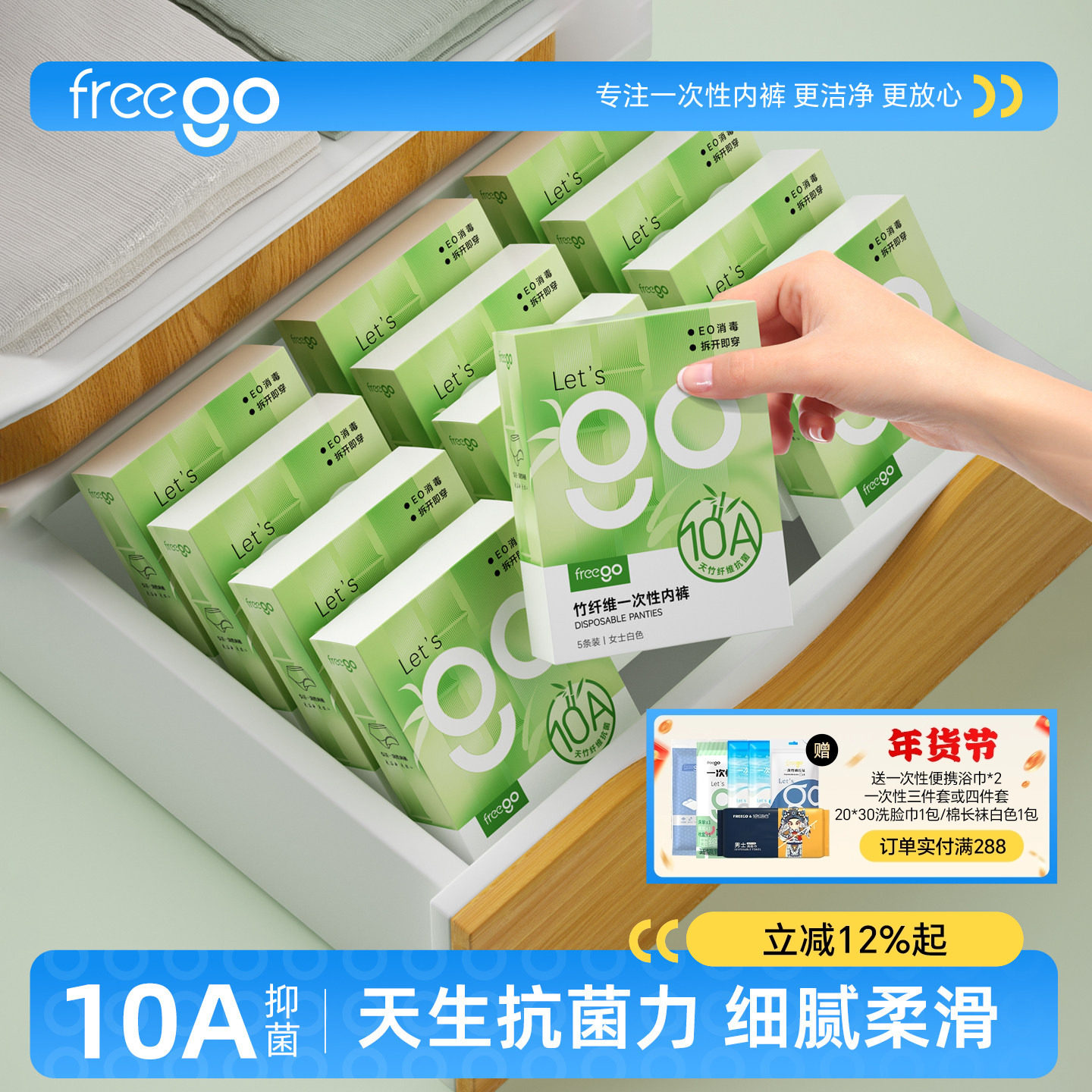 Freego一次性内裤女款纯棉女士竹纤维短裤产妇孕妇免洗旅行日抛