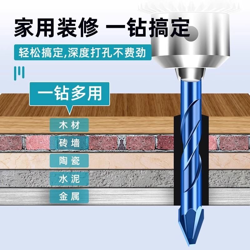 歪头螺旋偏心钻玻璃瓷砖混凝土超硬打孔钻头手电钻专用干打扩孔钻