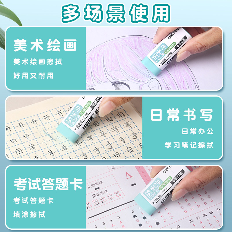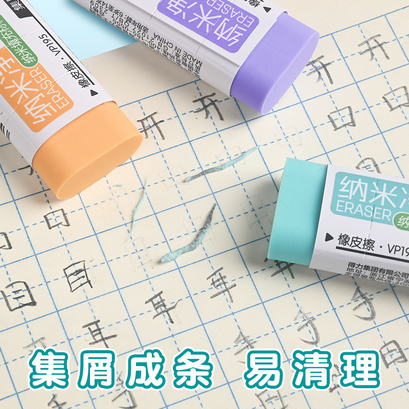 得力纳米净橡皮擦干净无痕学生用集屑成条无碎屑马卡龙大号橡皮擦