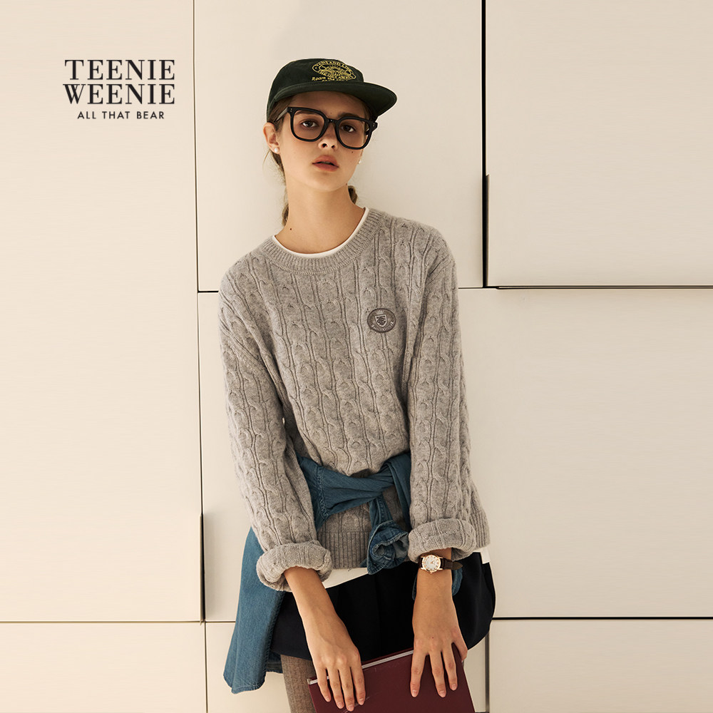 TeenieWeenie小熊女装毛针织衫秋冬季宽松舒适气质绞花套头毛衣