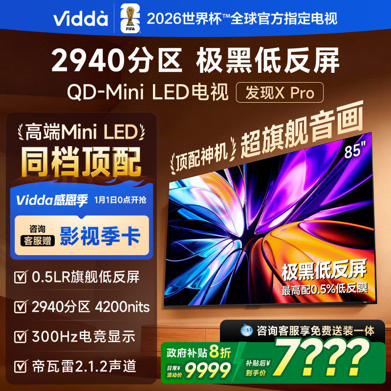 Vidda发现X Pro 2026款 85英寸海信电视机 QD-Mini LED世界杯电视