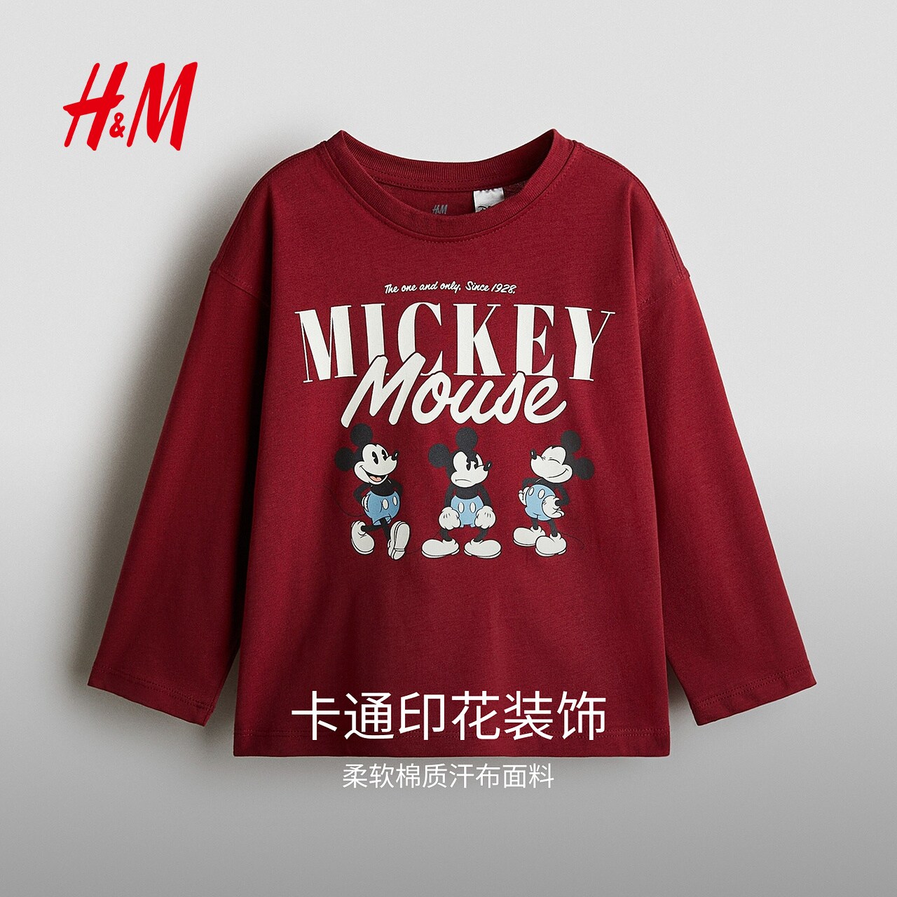 【迪士尼系列】HM童装儿童男童T恤冬季红色长袖1235745