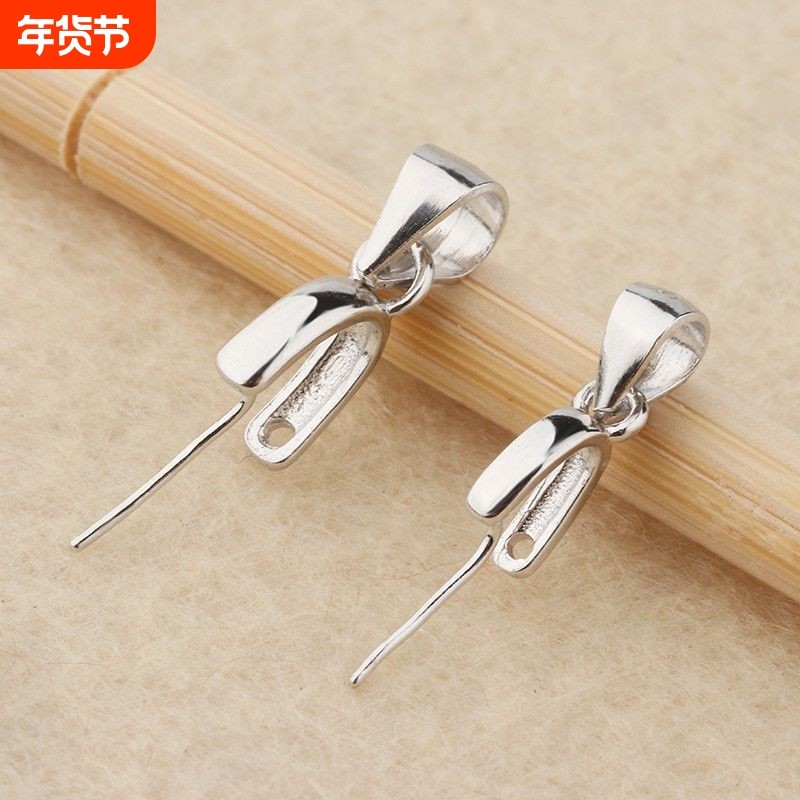 S925银瓜子扣玉坠夹扣玉扣扣头翡翠扣子穿针夹扣吊坠托夹扣