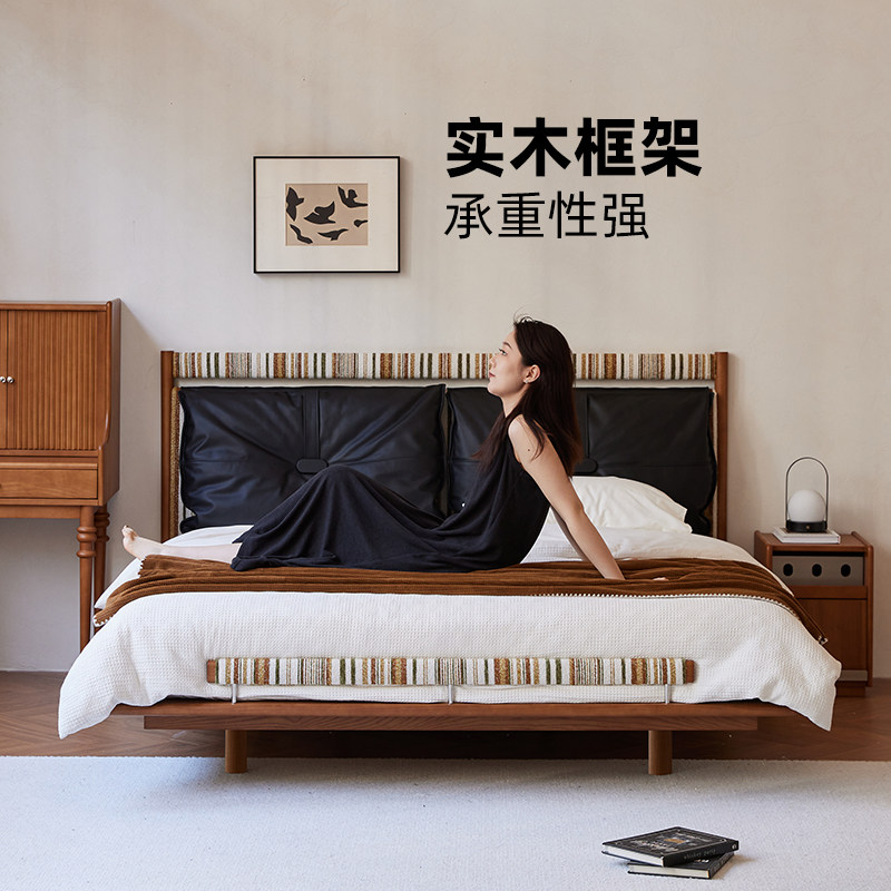 【伯明翰】雅兰真皮床政府补贴高端实木双人大床家用主卧1.8*2米