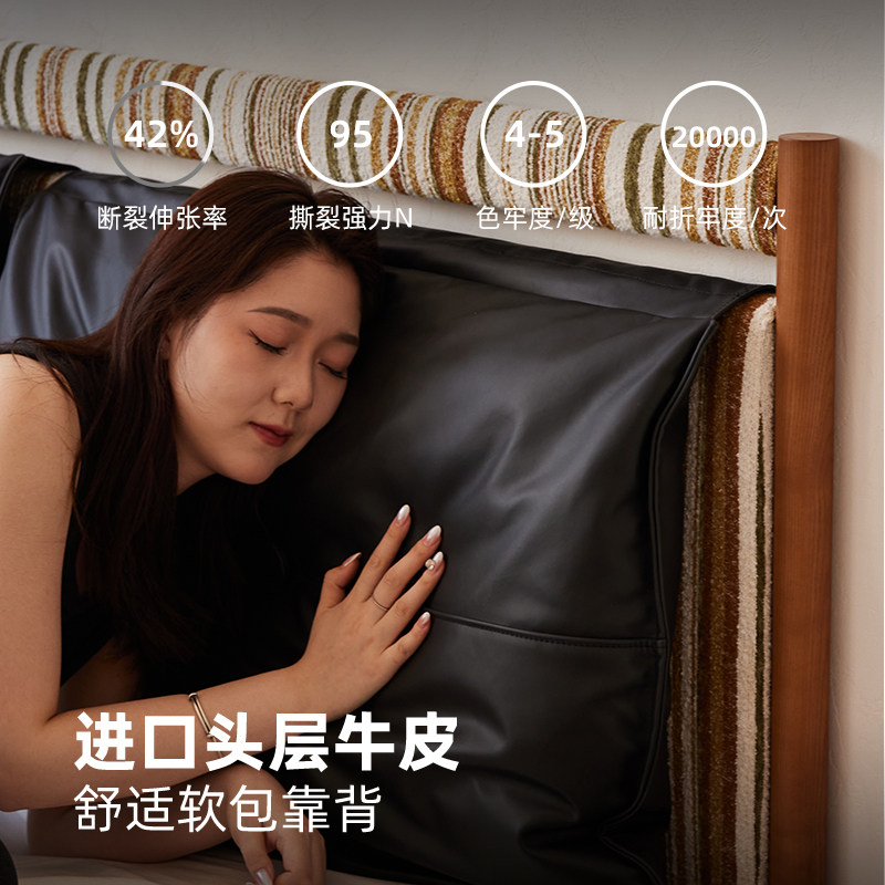 【李佳琦直播间】慕思全真皮软床头层牛皮真皮床