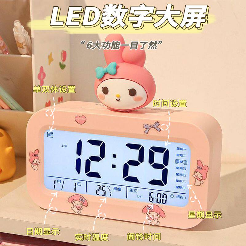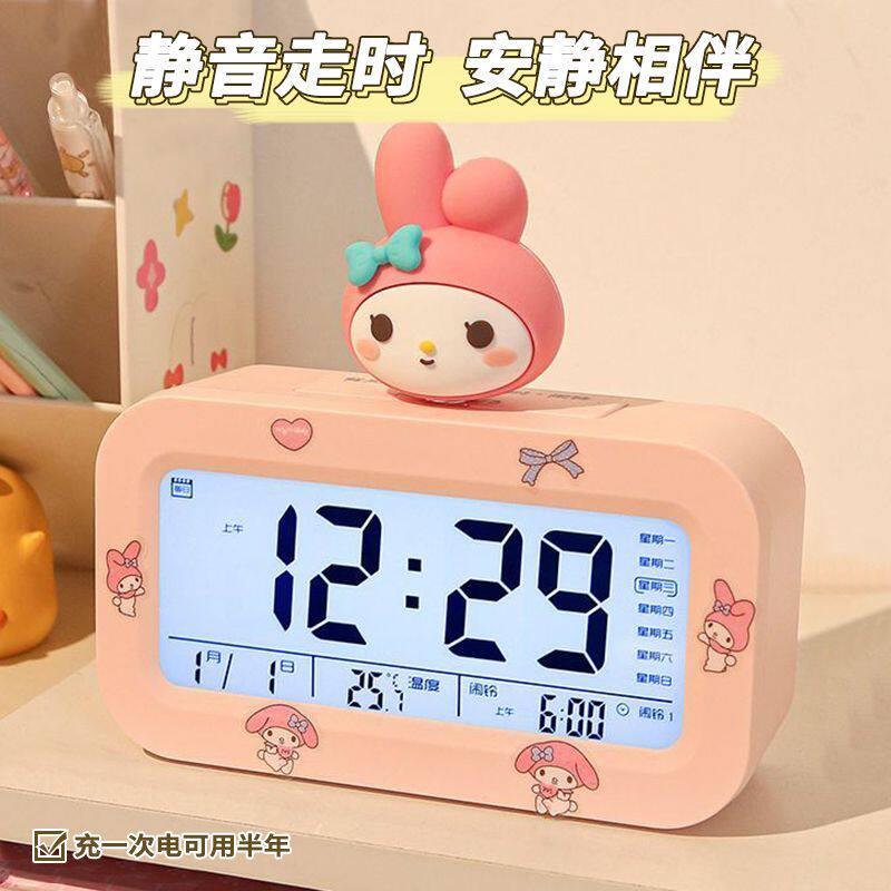 美乐蒂卡通闹钟学生电子钟充电夜光多功能倒计时器桌面台钟宿舍小