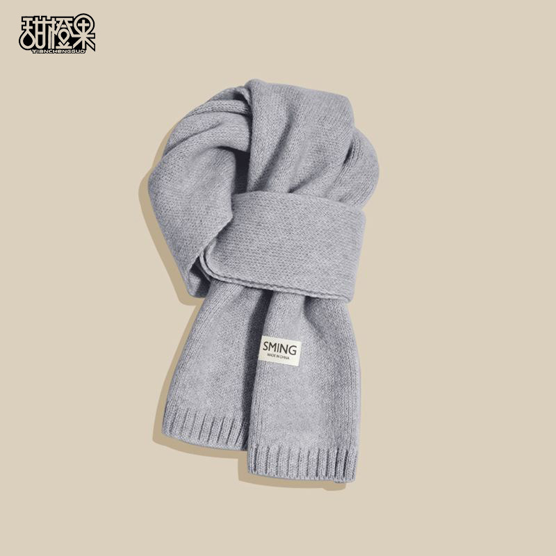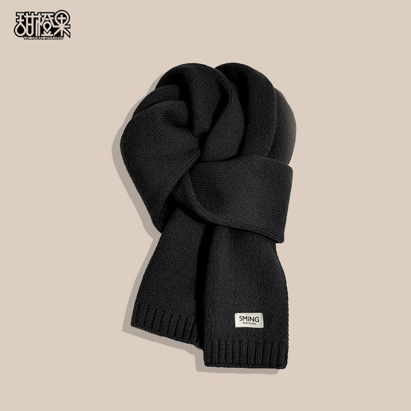 纯色针织围巾男女秋冬季韩系氛围感加厚保暖护颈围脖情侣百搭护肩