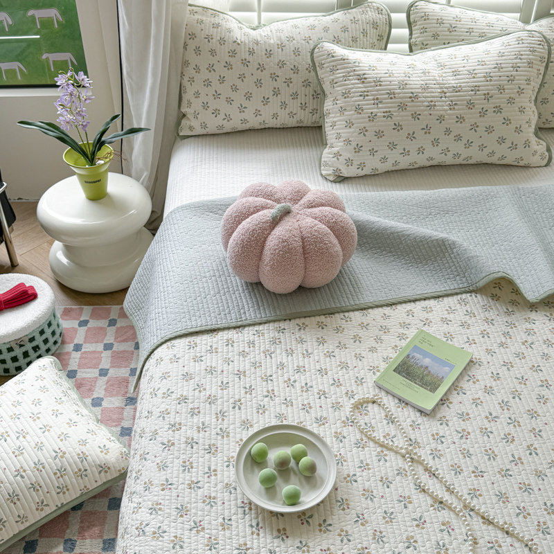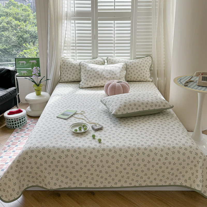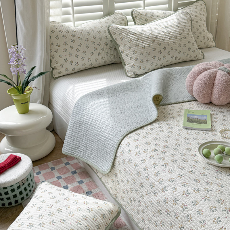 韩国大鹅小清新碎花双面纯棉床盖单件四季通用绗缝夹棉床单不起皱