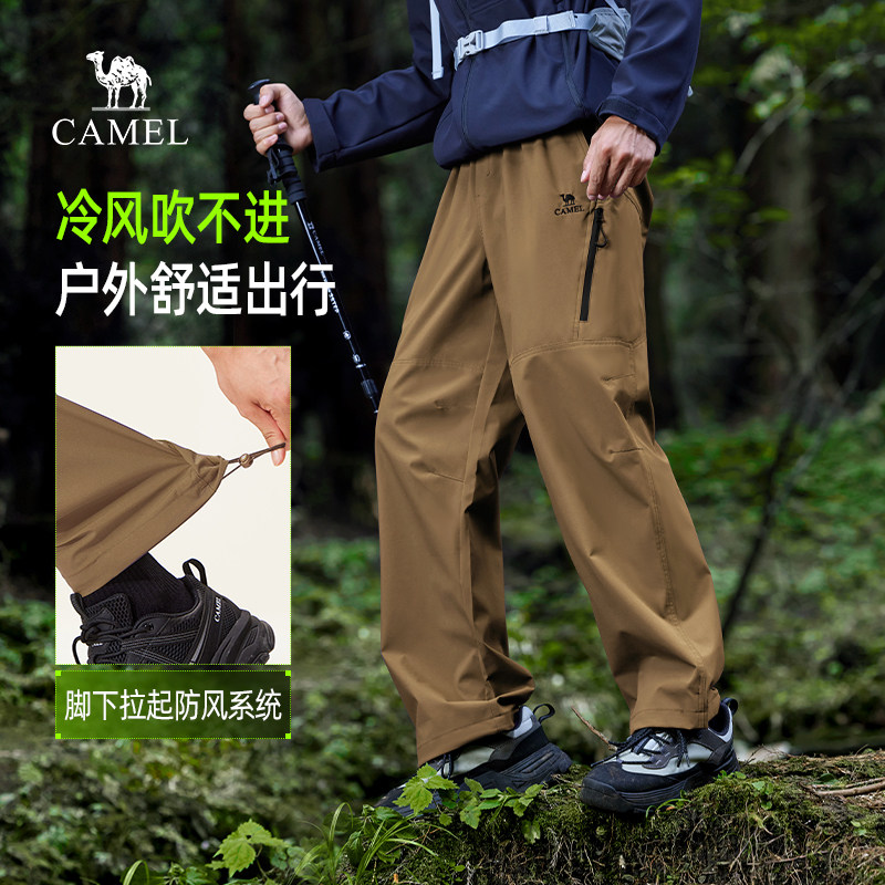骆驼男装户外登山冲锋裤2026春夏季男徒步防泼水工装宽松长裤子
