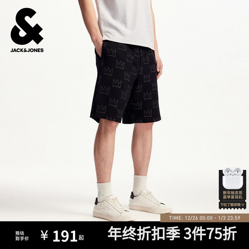 杰克琼斯男装秋季新款BSQ联名潮流百搭满印LOGO舒适纯棉短裤子