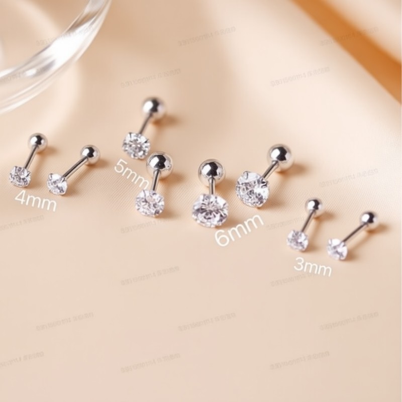 925镀银耳钉女螺丝拧扣养耳洞耳骨钉睡觉免摘高级感耳环耳饰钻石