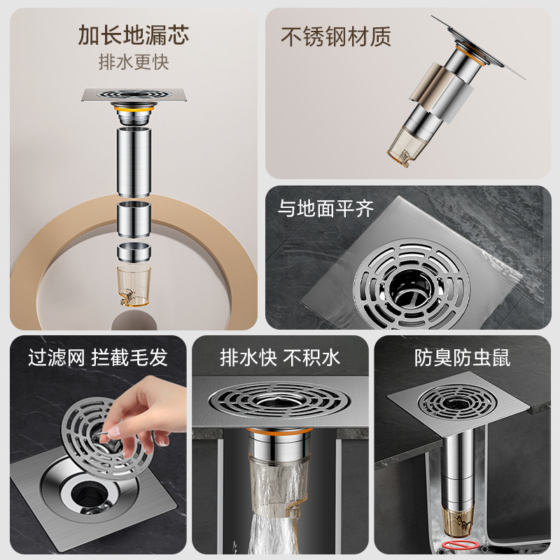 断层加长地漏芯下水道延长管防返臭神器304不锈钢防臭通用盖滤网